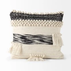 Outlet 🌟 Mercana Beardell Cream & Black W/ Tassels Decorative Pillow Cover 🛒