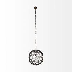 Brand new 🎁 Mercana Zaio Weathered Antique Gold Metal Caged Pendant Light – 13″W X13″D X 19″H ❤️