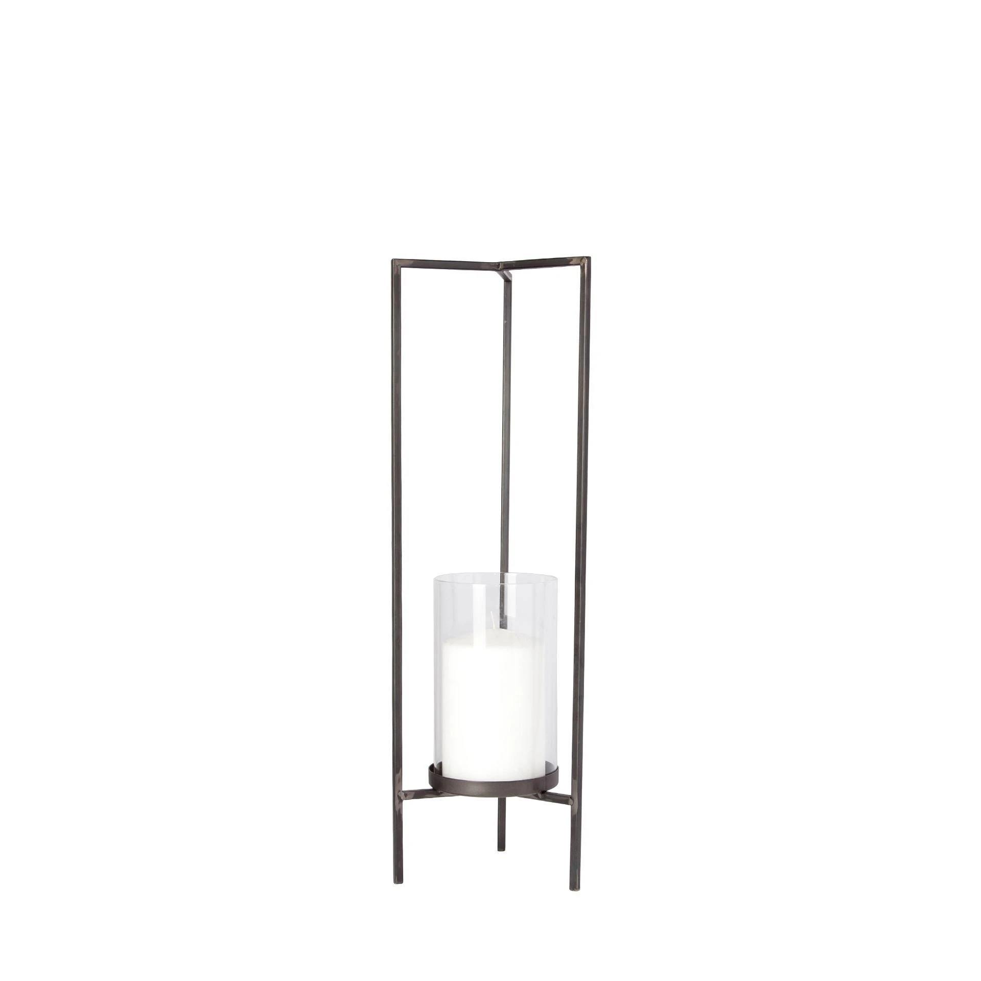 Abigail is our series of quietly elegant black metal candle holders. They can used on a table or shelf, but are large enough to be floor standing as well. It has a matte black finish with a large glass votive so you can use a large candle.