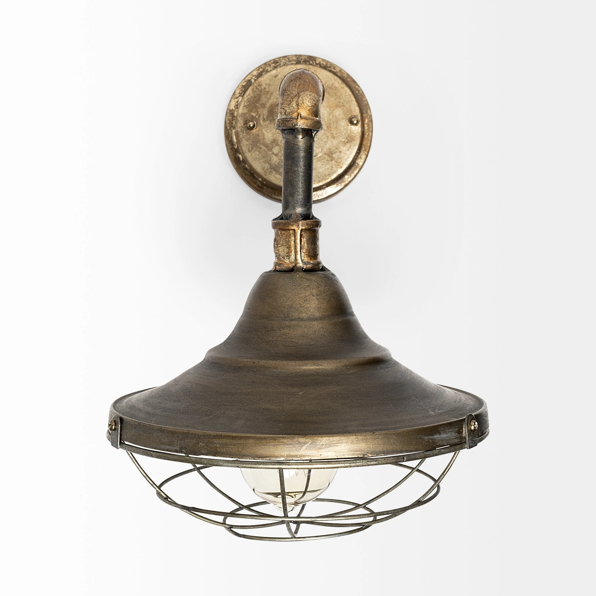 Crafted from metal and finished in an electroplated-bronze tone with antiqued-gold accents, this amazing wall sconce flaunts a rustic texture, which givesย it a truly industrial vibe.
