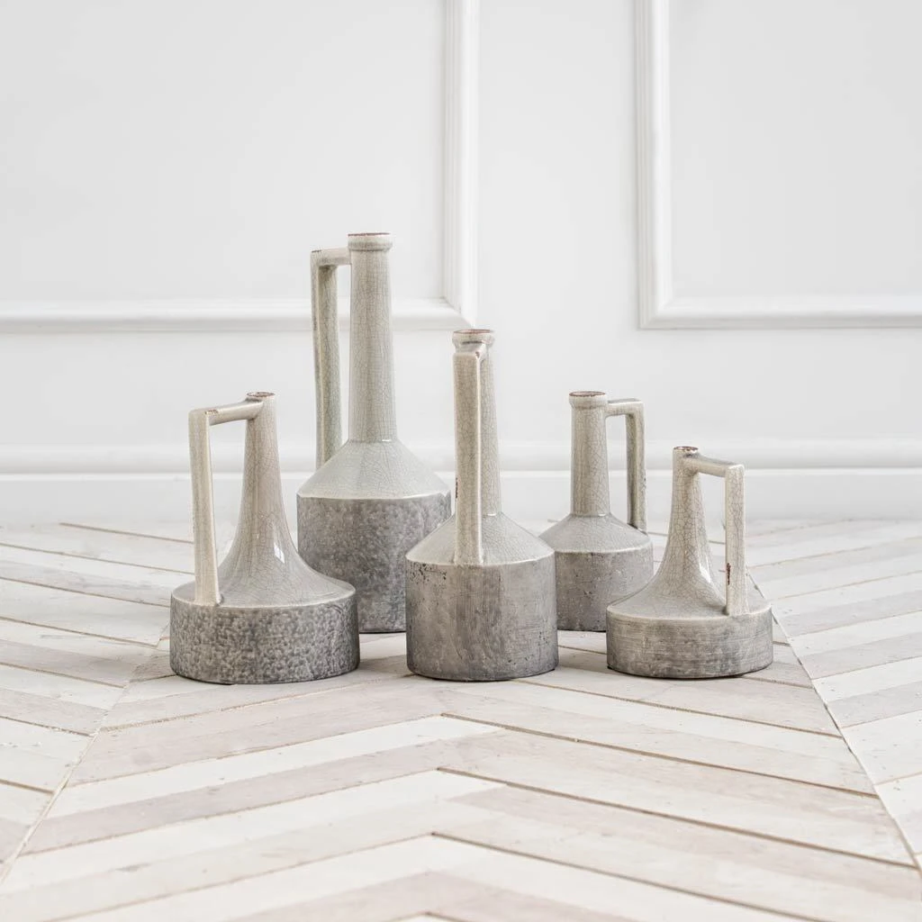 Expertly crafted from ceramic and finished in a two-tone palette, the Burton series of vases comprises of five stunning vases that look great on their own or when paired with each other. Featuring a sleek neck in a high-gloss, crackled white finish that complements the raw, matte-finished base, the Burton vases fit perfectly in spaces based on the Enduring Elegance and Coastal design styles.ย ย