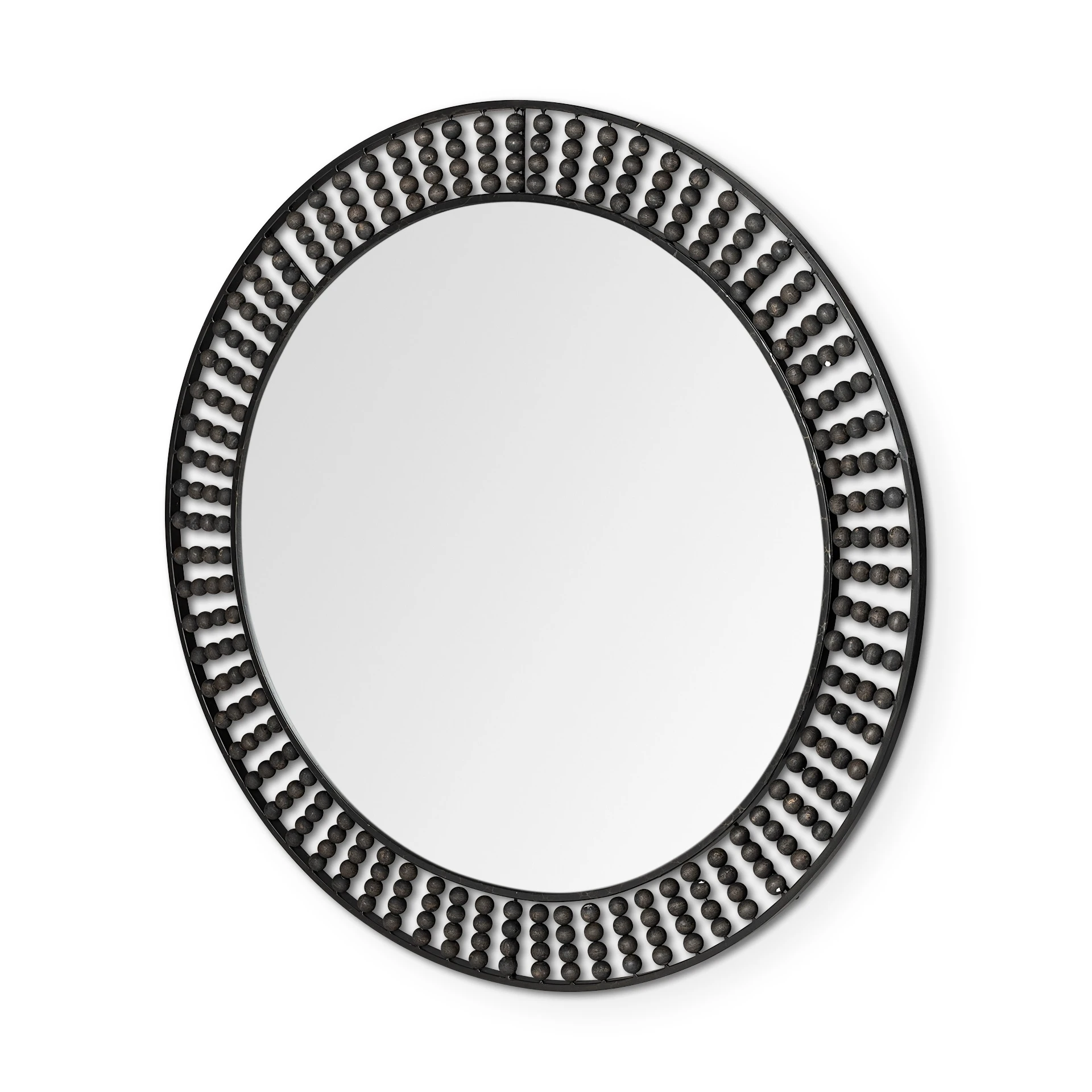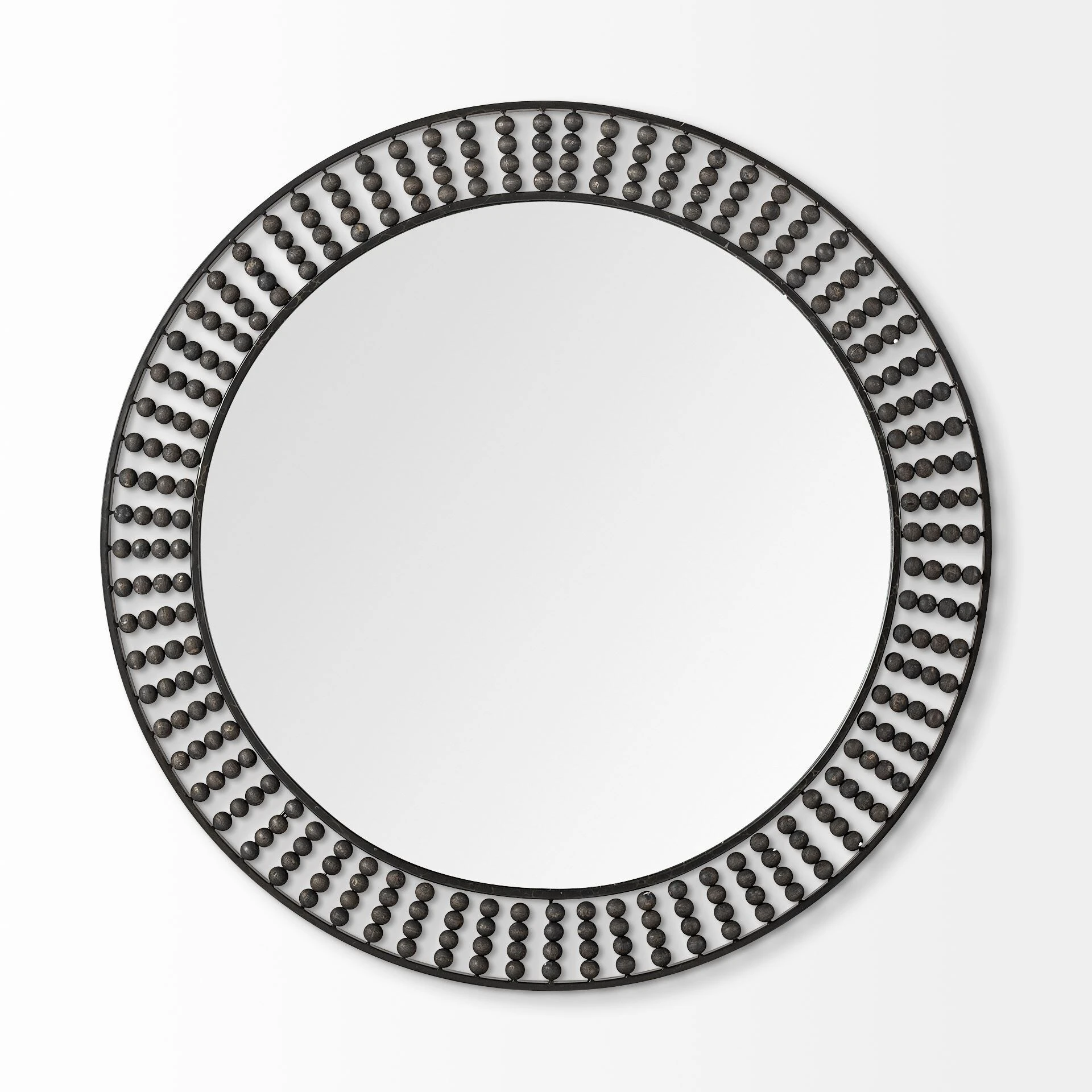 Crafted from metal and finished in a stunning, matte-black tone, the Claiborne II is a spectacular, double-framed round mirror with spectacular wooden bead details in a rustic black tone. Spanning 42″ in diameter, this stylish wall mirror looks gorgeous in any elegantly styled space and is guaranteed to add a touch of flair to your walls.