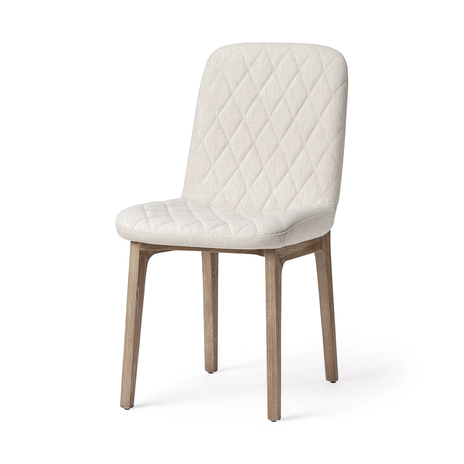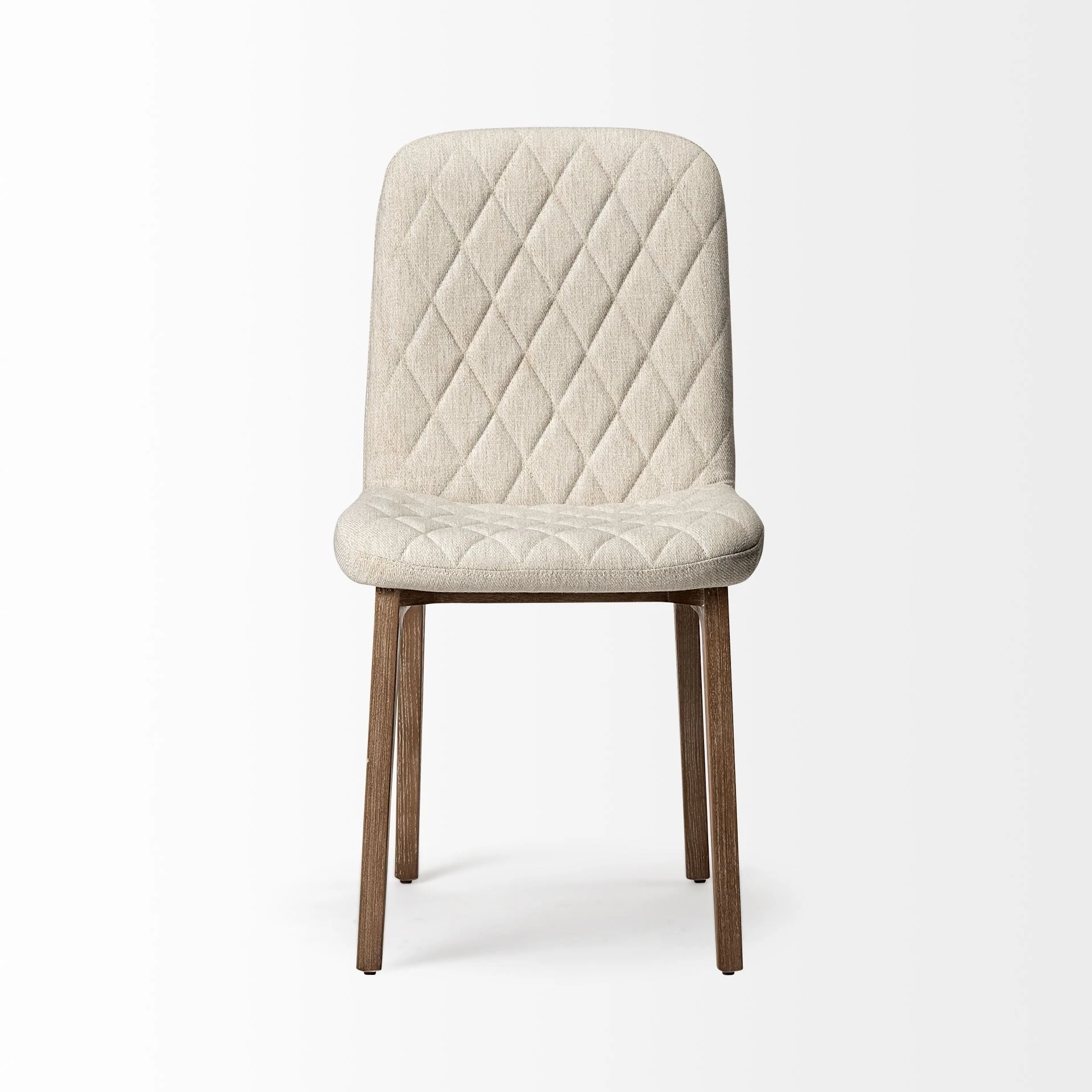Featuring a cream-colored, fabric-wrapped, unibody seat and backrest with intricate diamond stitching, the David I is a dining chair that looks stunning when paired with most dining tables. The plush seating on the David I is supported by four, medium-brown toned, Beechwood legs that ensure unparalleled stability without compromising on style. The David I dining chair fits best in spaces based on the Mercana Modern, Lakeside or Enduring Elegance design style.