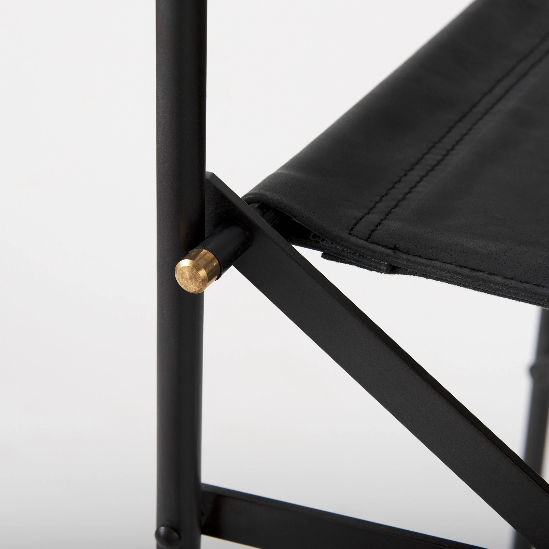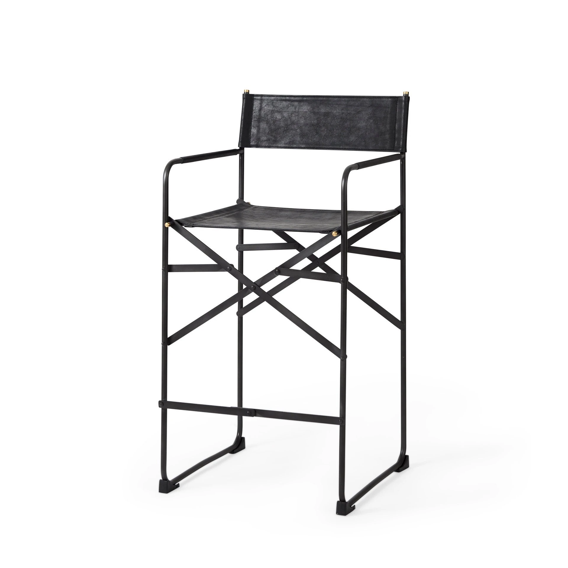 The Direttore, a spectacular counter stool that is inspired by a director’s chair, features a solid iron frame and is easily foldable. Featuring a classic combination of black leather and matte-black metal, the Direttore makes for a great addition to living rooms based on the Industrial and Mercana Modern design style.ย