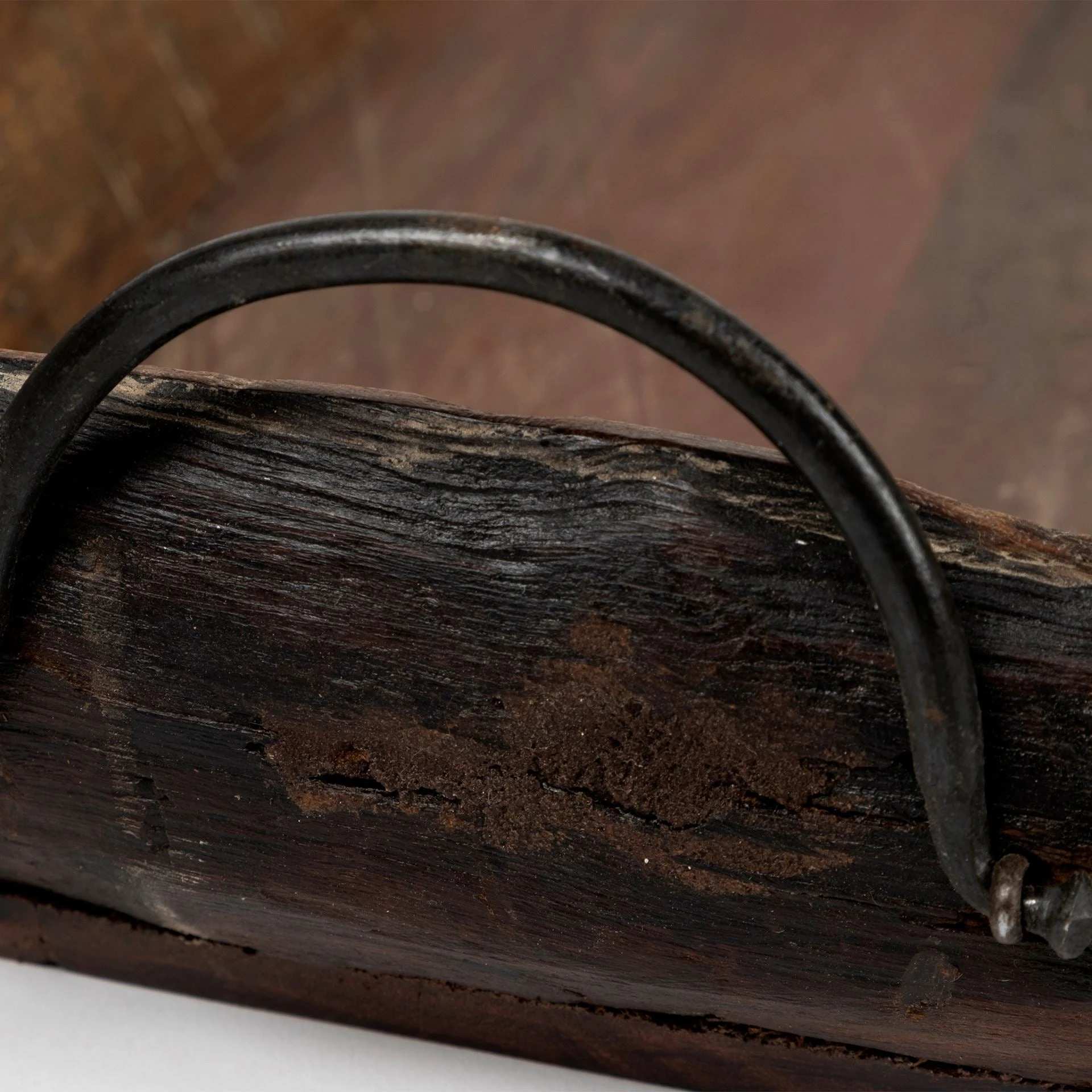 The Durone is ย a set of two wooden trays that feature a live edge and metal handles.