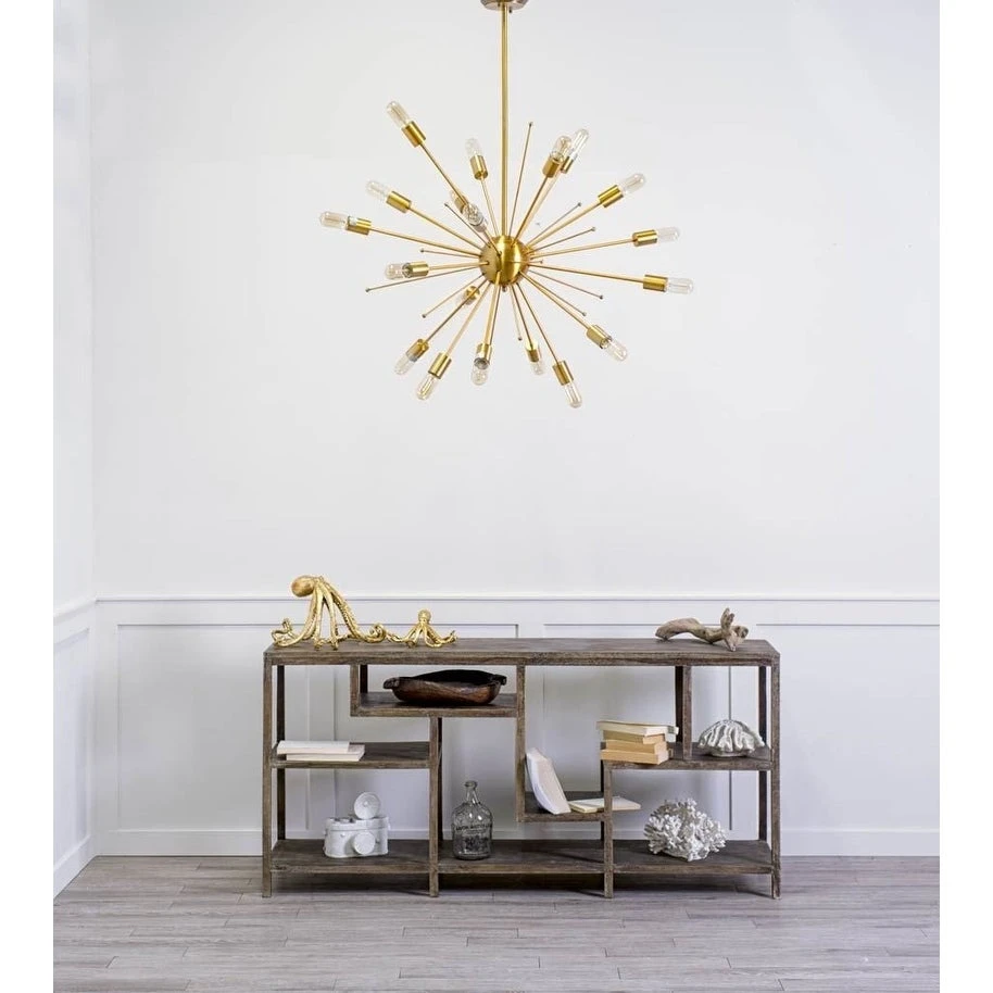 The Edisonna II is a stunning, mid-century inspired, oversized sputnik chandelier finished in a dazzling gold tone. It uses twenty, 40-Watt, E26 standard bulbs (Sold Separately) to cast a bright, ambient glow. The Edisonna II looks gorgeous in spaces based on the Enduring Elegance and Farmhouse design styles.ย