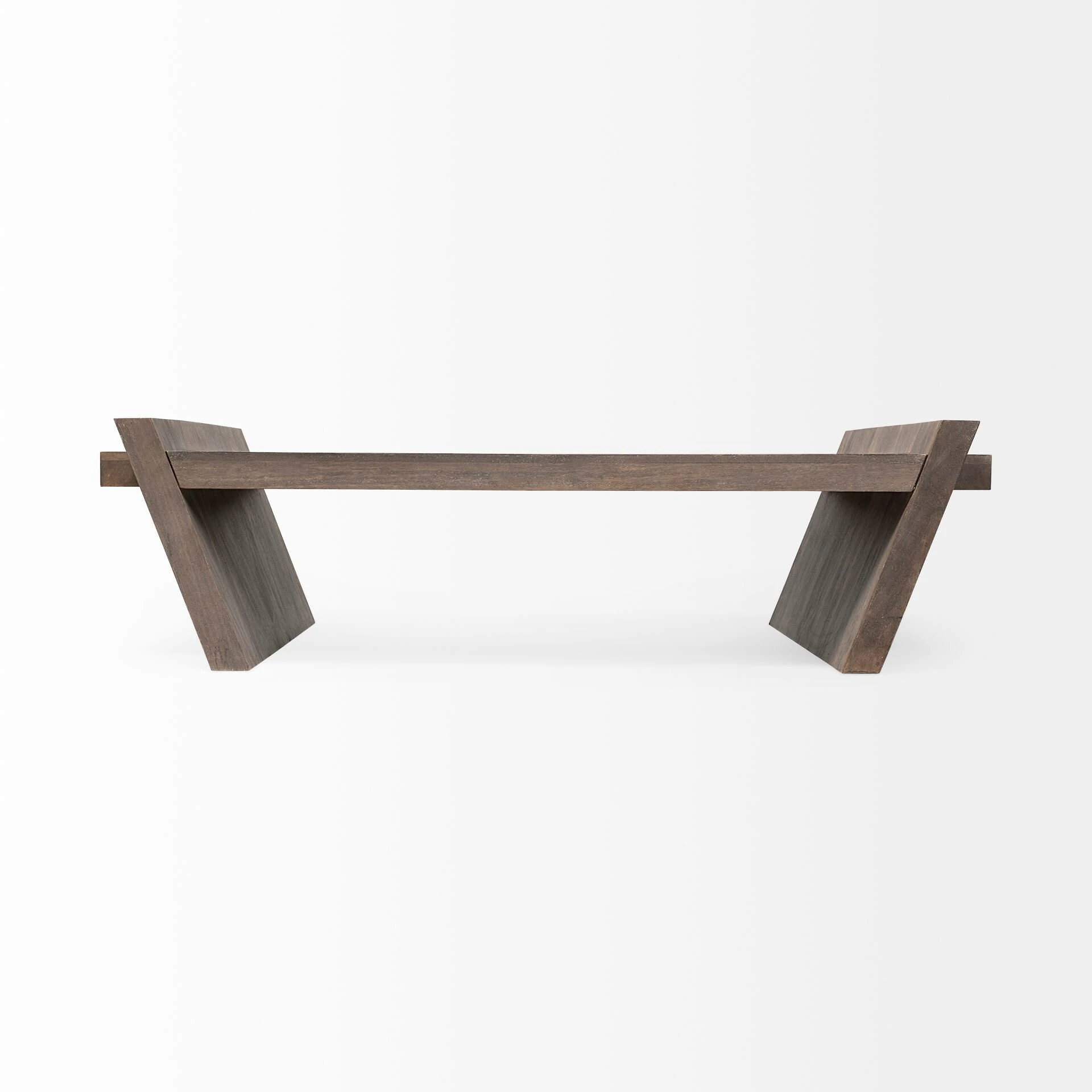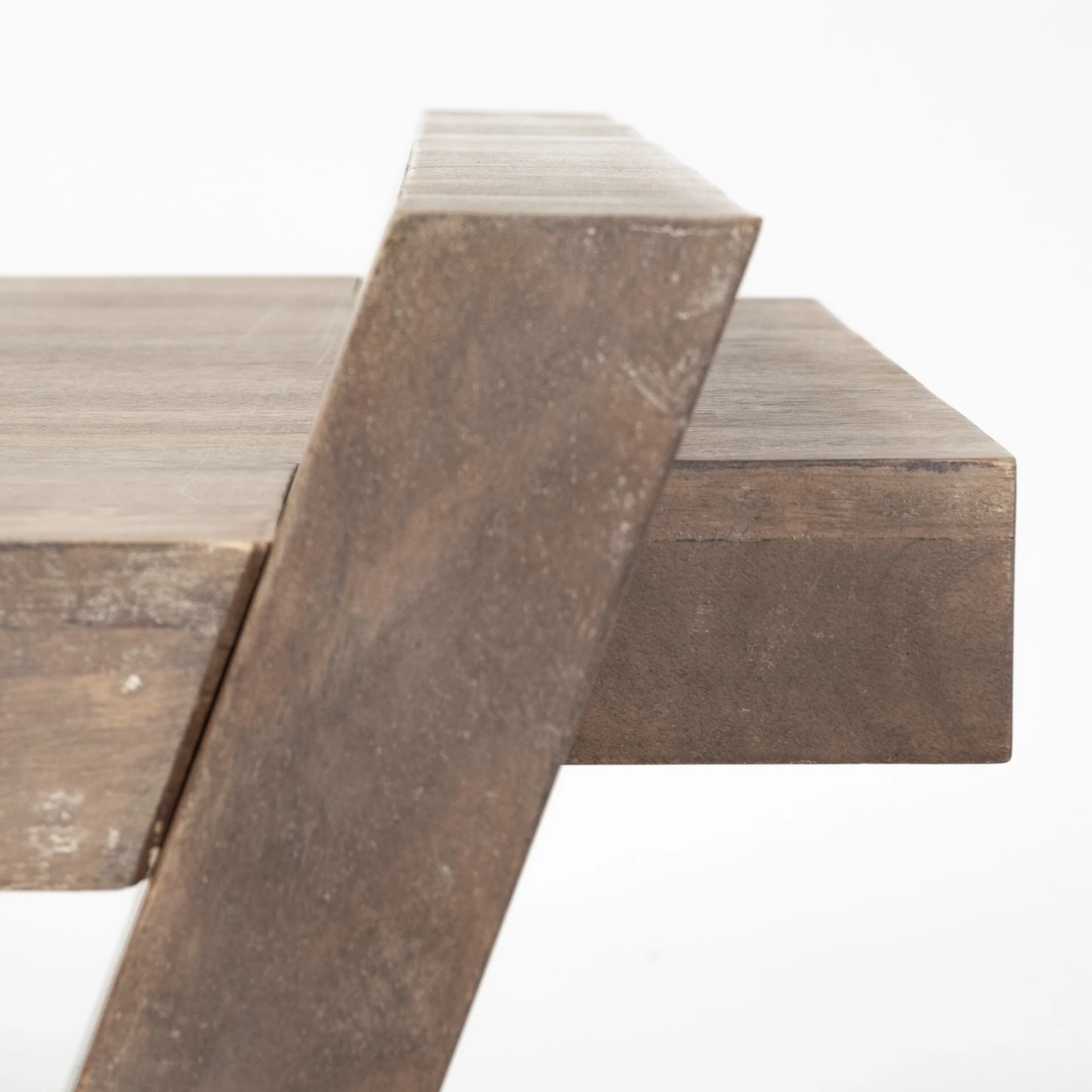 This coffee table, made entirely from solid Mango wood with a cantilever design, strikes a beautiful, angular profile. - Gray Washed Finish