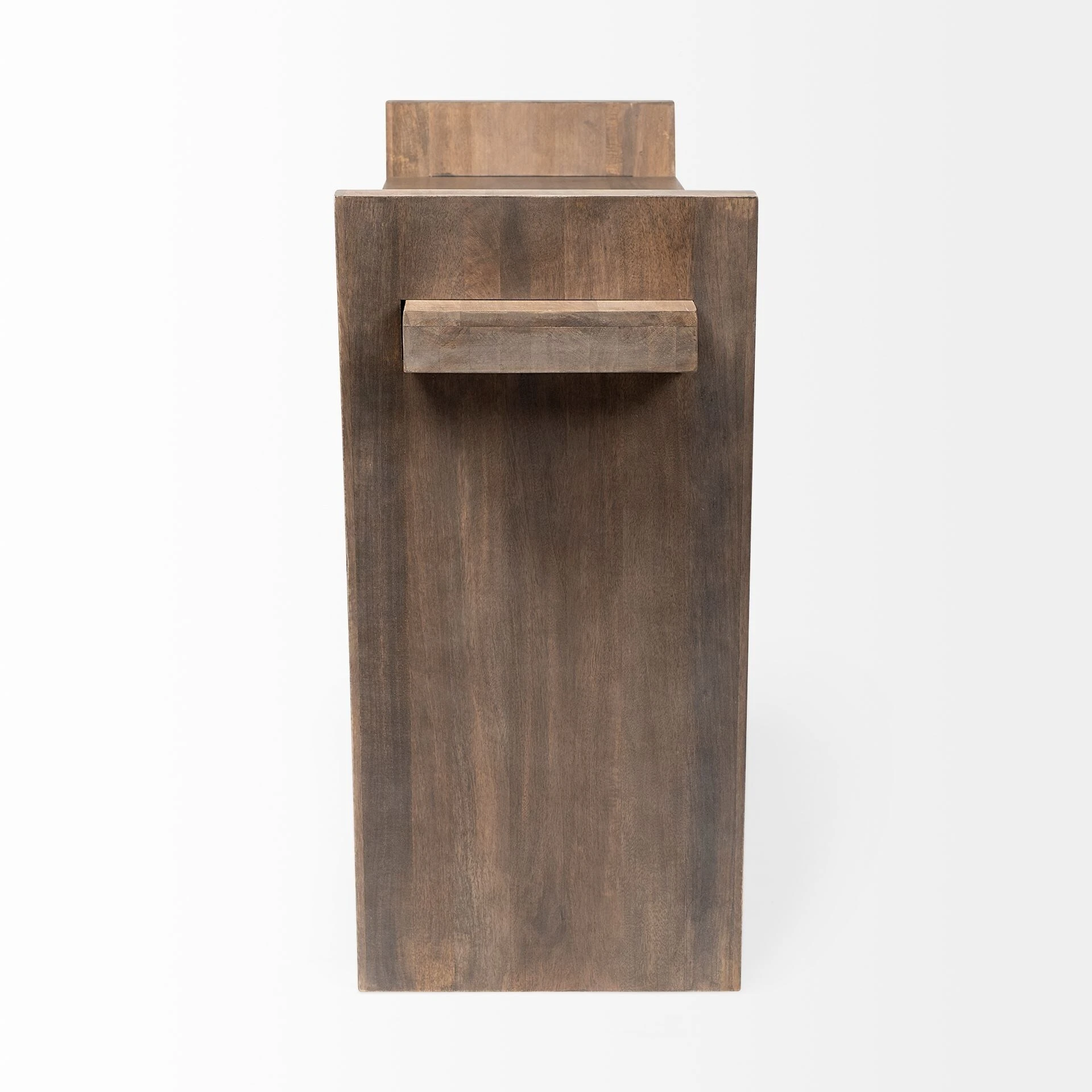 Meticulously crafted from premium Indian mango and finished in a natural, medium brown tone, the Elaine III is a spectacular console table featuring a smoothly polished top braced by two angled legs. Designed to suit most contemporary spaces, the Elaine III flaunts clean lines and has a sleek silhouette that is complemented by the superior finish responsible for highlighting the natural variations and knots of the wood. We recommend the Elaine III in spaces based on the Mercana Modern or Farmhouse design styles.
