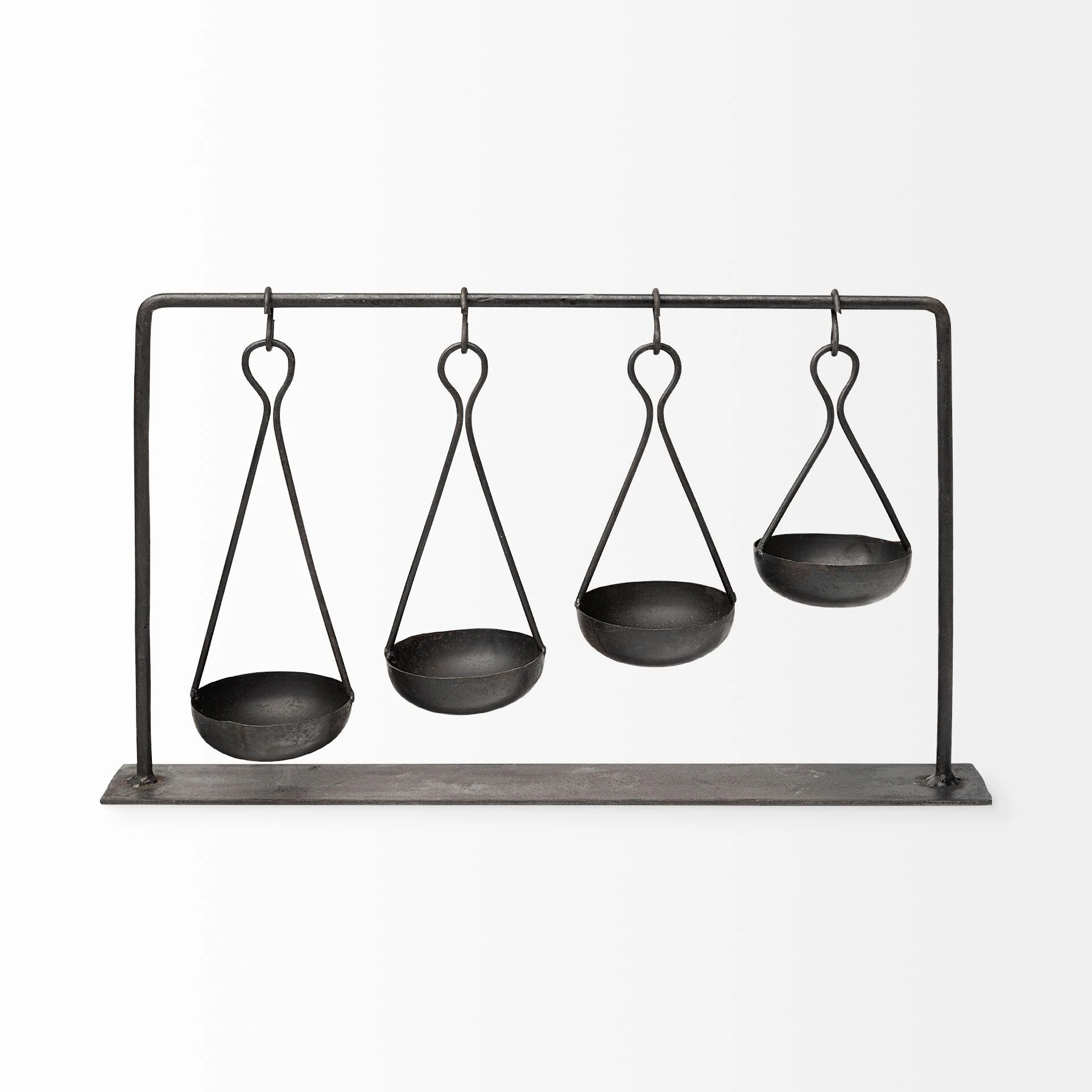 Based on an industrial-inspired design, the Enos is a spectacular decorative object featuring four bowls suspended from a central beam. With an all-metal body that is complemented by its gunmetal grey finish, the Enos looks great in spaces based on the Industrial or Mercana Modern design styles.