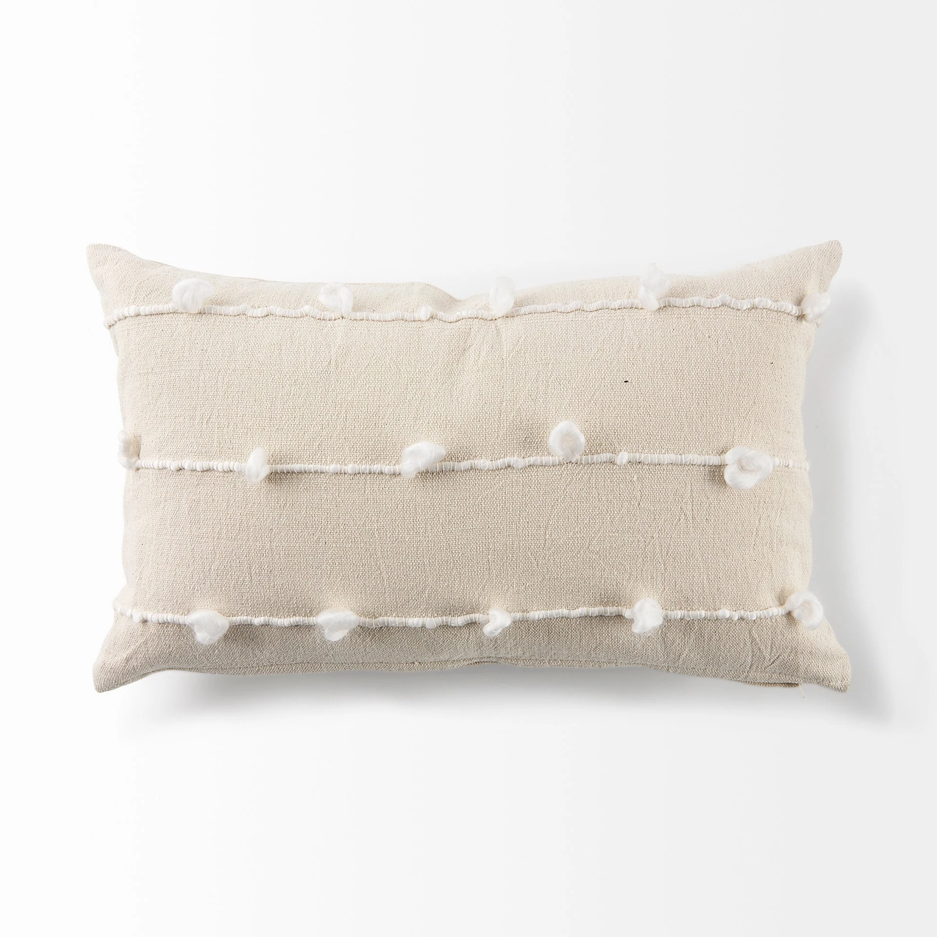The Erica is a 13 x 21 Cream With White Detail Decorative Pillow Cover with zipper closure. Also available in 20 x 20. Cover only. Insert not included (sold separately).