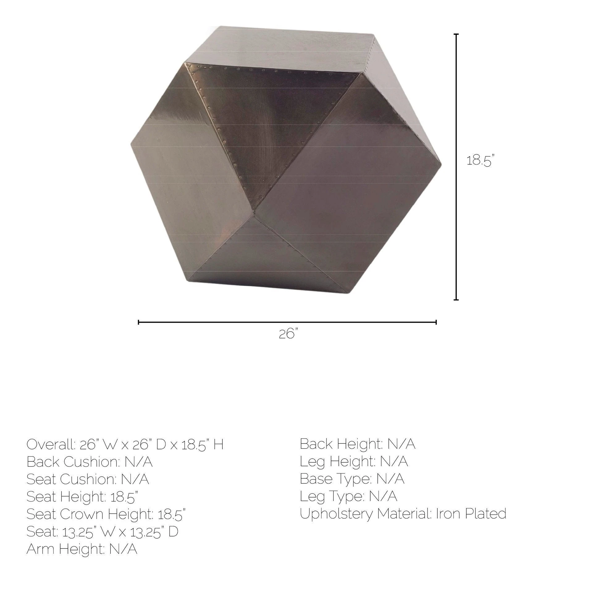The Exagoni IV is a dark-bronze toned, iron plated, hexagonal structure that is versatile enough to be used as an ottoman to put your feet up on, as a stool to sit or just as a piece of dรฉcor to add a touch of elegance and posh to your space. The dark bronze polish with nail head details makes the Exagoni IV a great choice for spaces based on the Industrial or Mercana Modern design styles.ย