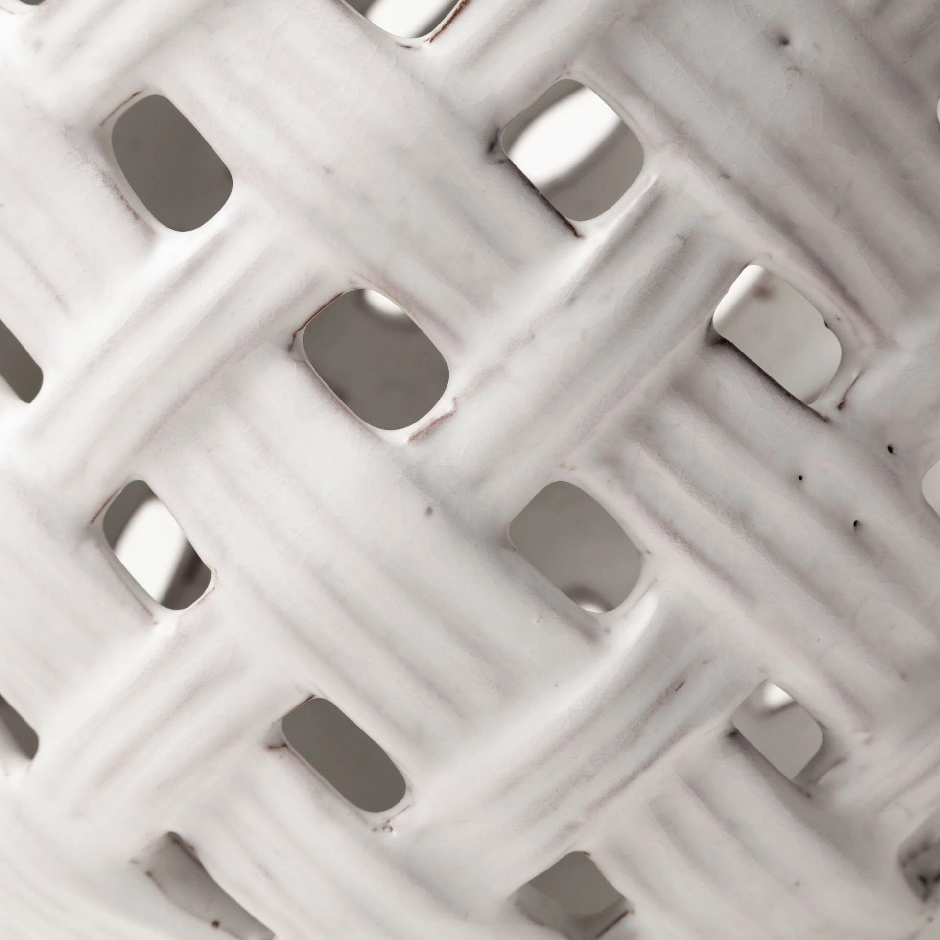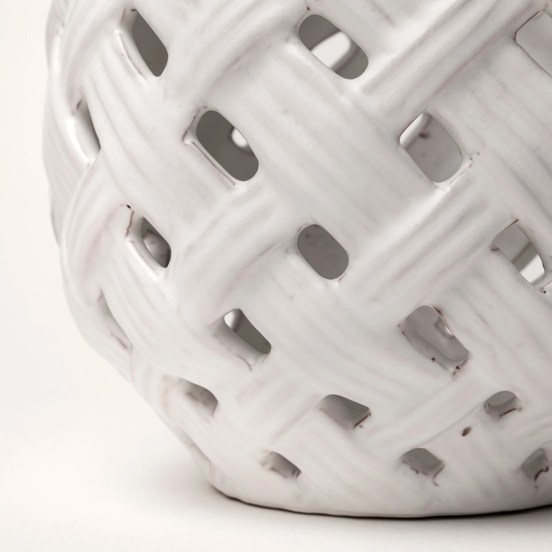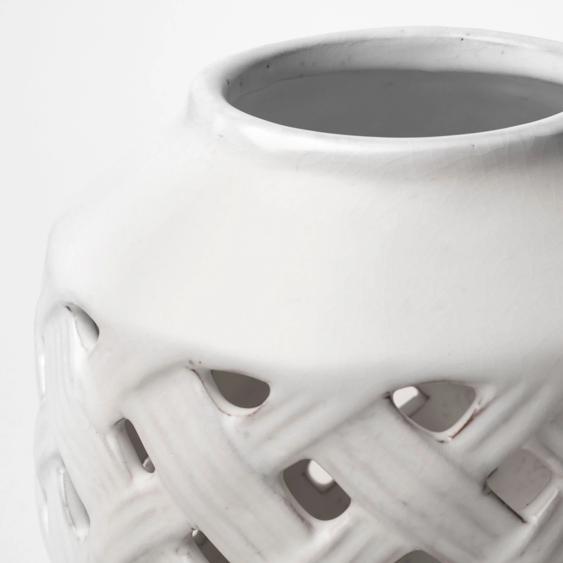 The Forillon is finished in a spectacular white glaze with a lattice pattern, making it a stunning vase that is sure to turn heads. - Modern/Farmhouse Inspired Design
