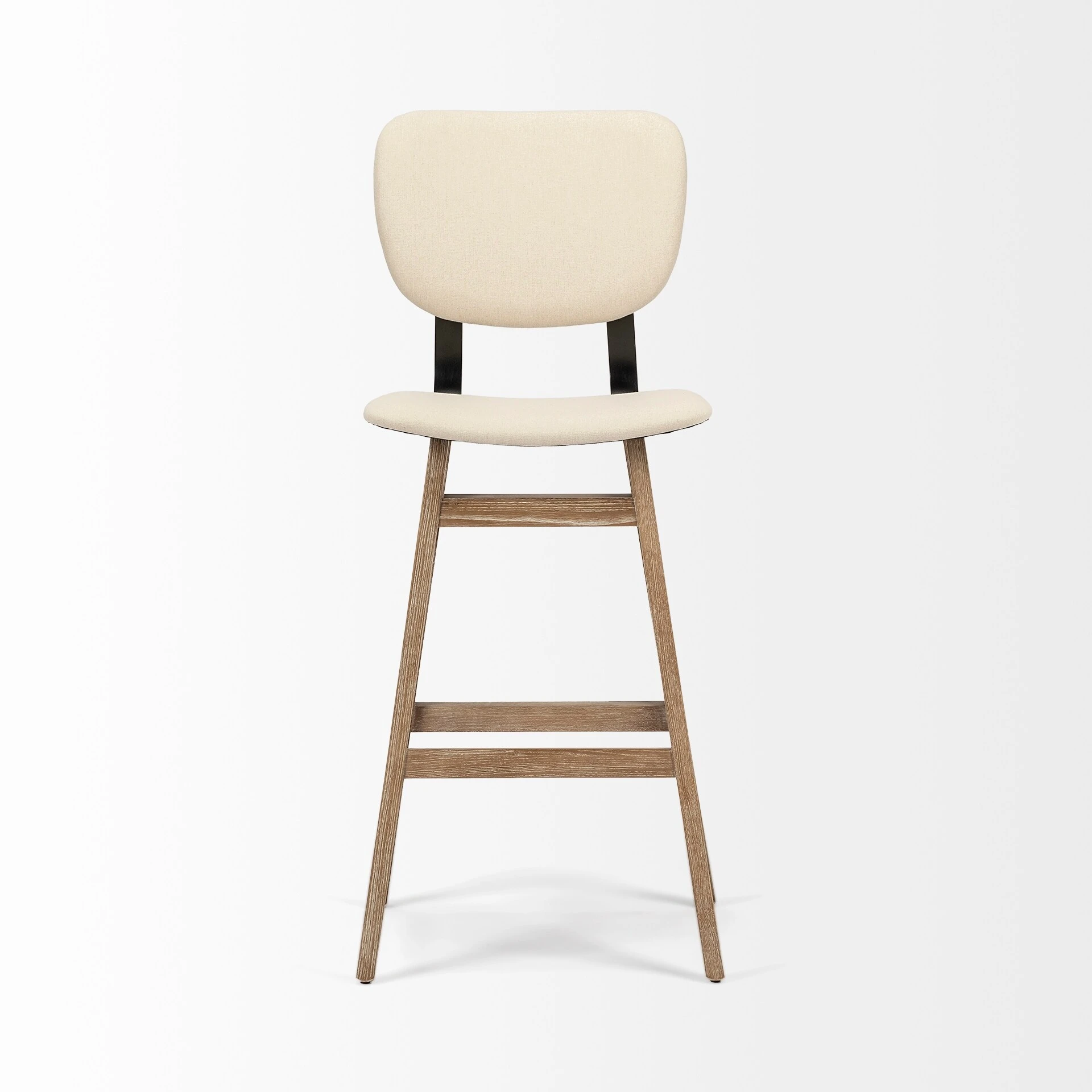 The Haden IIย isย a comfortable, chair-style bar stool featuring a seat and back wrapped in a cream-toned fabric with exceptional cushioning. The seating is mounted atop a stylish, four-legged Beechwood base equipped with footrests that stabilizes the stool to perfection. A perfect combination of style and comfort, the Holden IIย fitsย perfectly among other pieces in spaces based on the Farmhouse, Lakeside, Industrial andย Enduring Elegance design style.ย