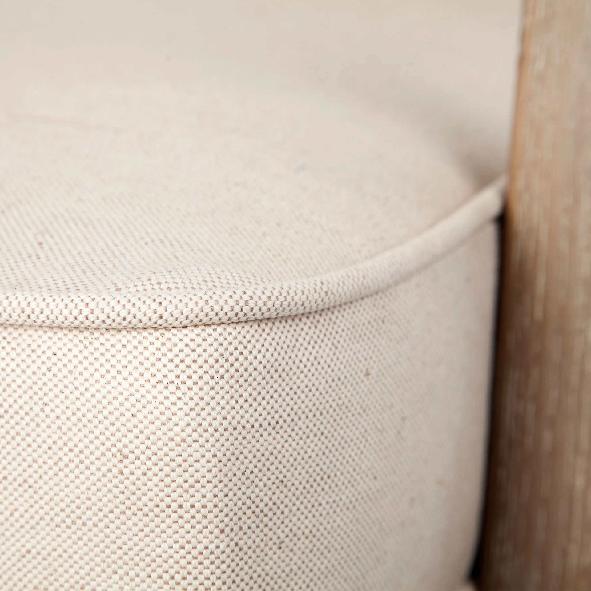 The Harman II, featuring a detached seat and back wrapped in plush cream-toned fabric, makes not only for a comfortable seating option but also a visually enticing addition to any living room.ย - Sturdy Ashwood Frame