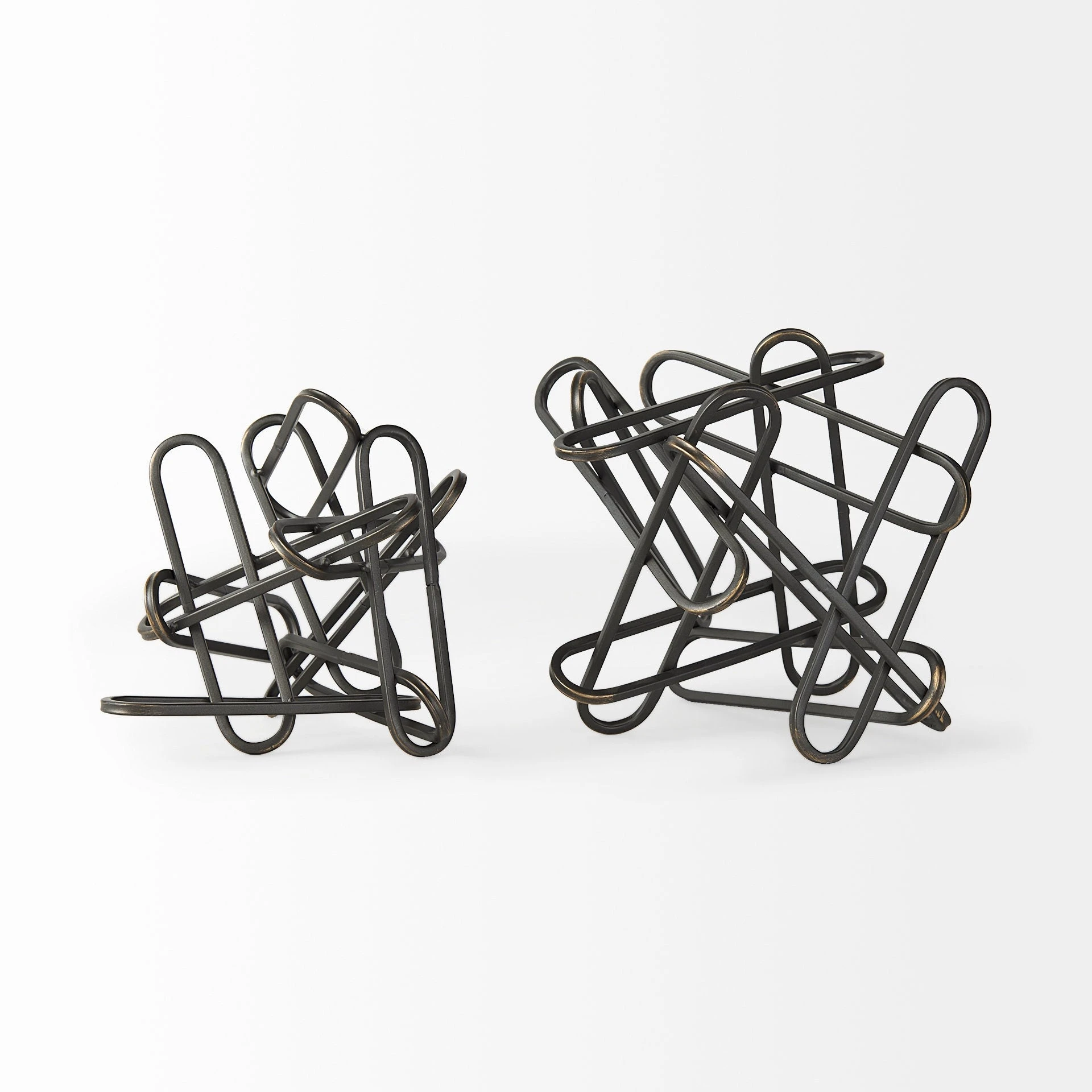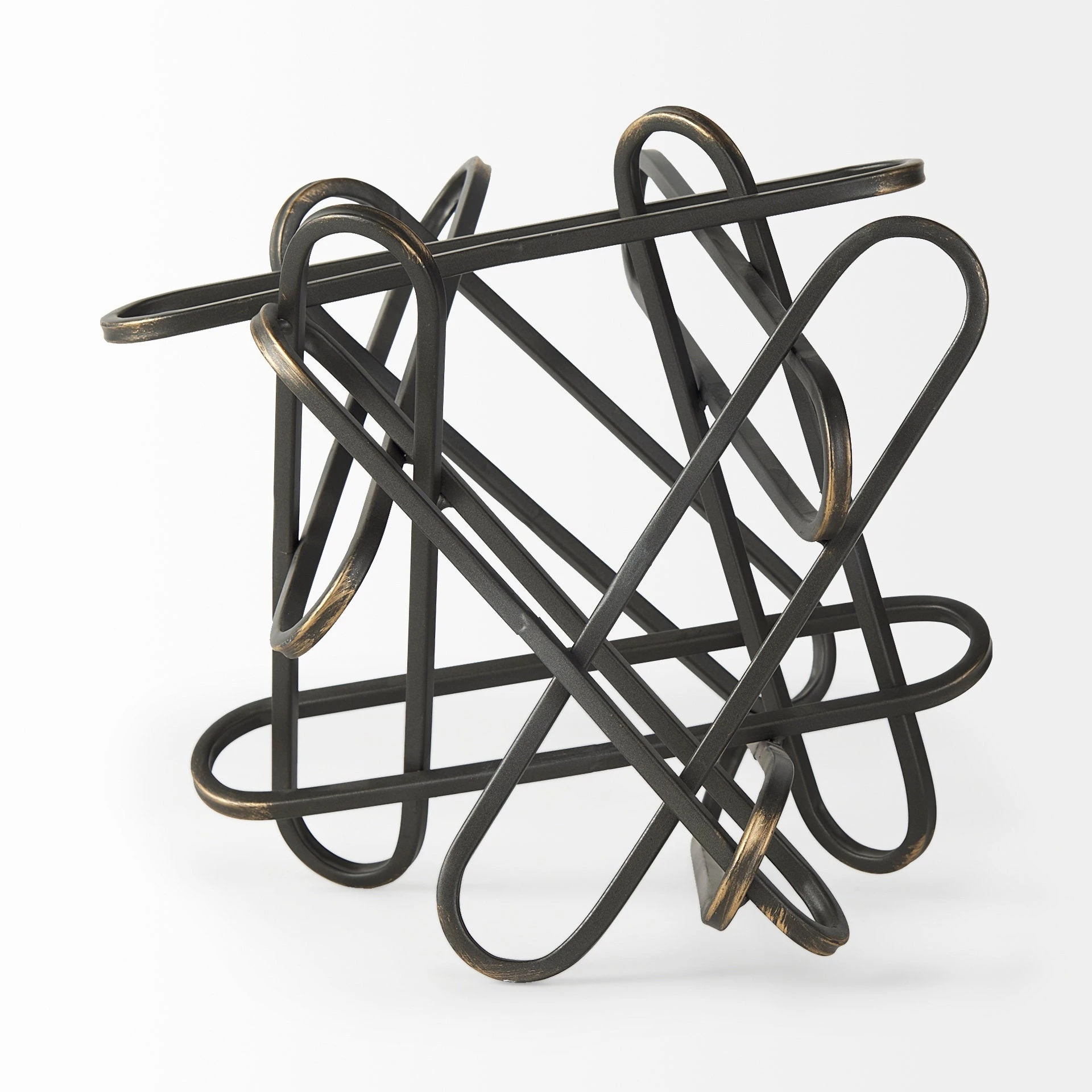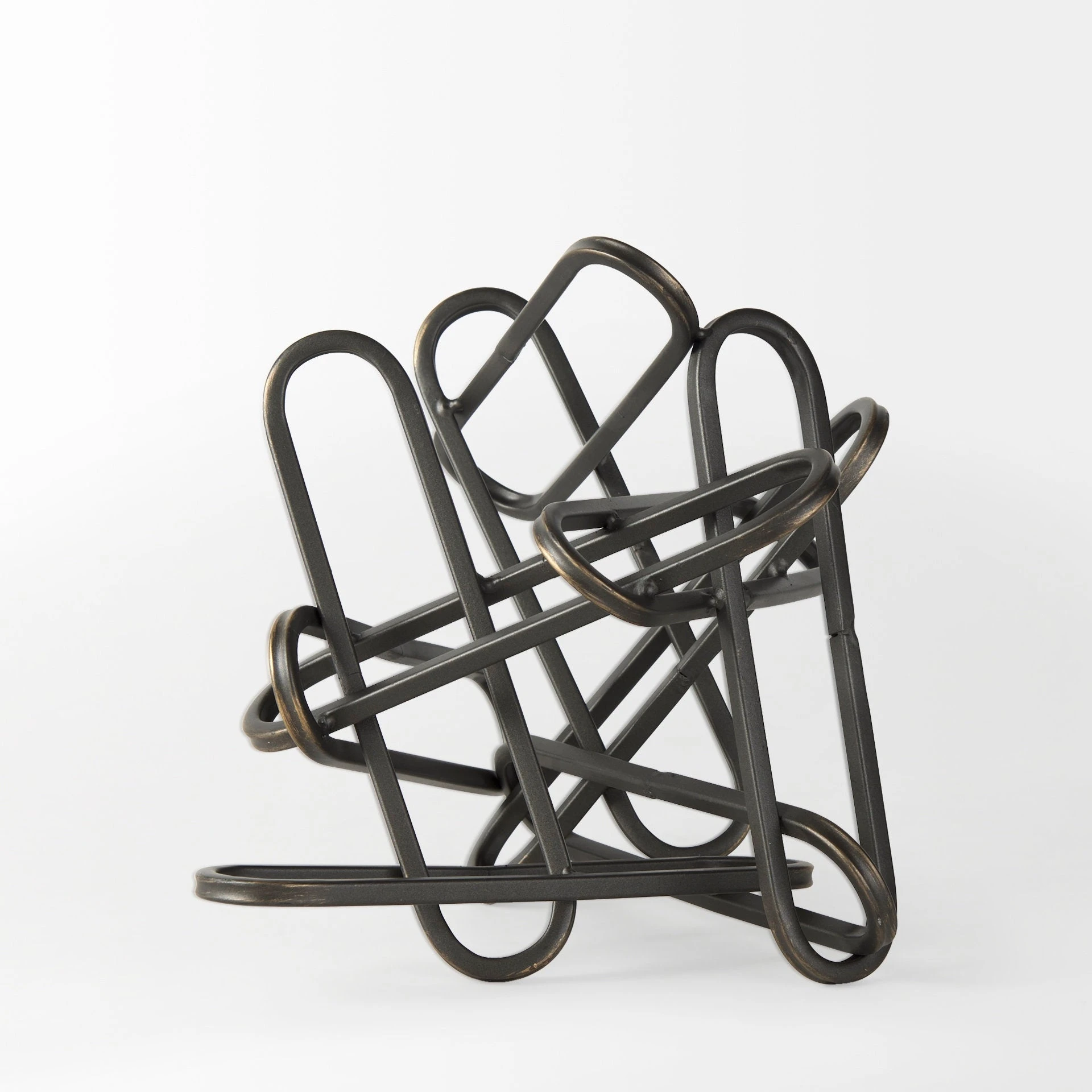The Henderson small decorative object measures 10.4″ long by 8.3″ wide by 7.7″ high.ย This paperclip inspired decor piece is carefully crafted from solid metal, making it durable in nature.ย The Henderson is finished in a matte black polish, making it a striking object that is sure to be the perfect accent in your space.ย This paperclip deorative object is not something you see everyday- it’s simple, yet packs a punch. Need the perfect table topper or space filler for your modern or industrial styled home? Look no further!ย