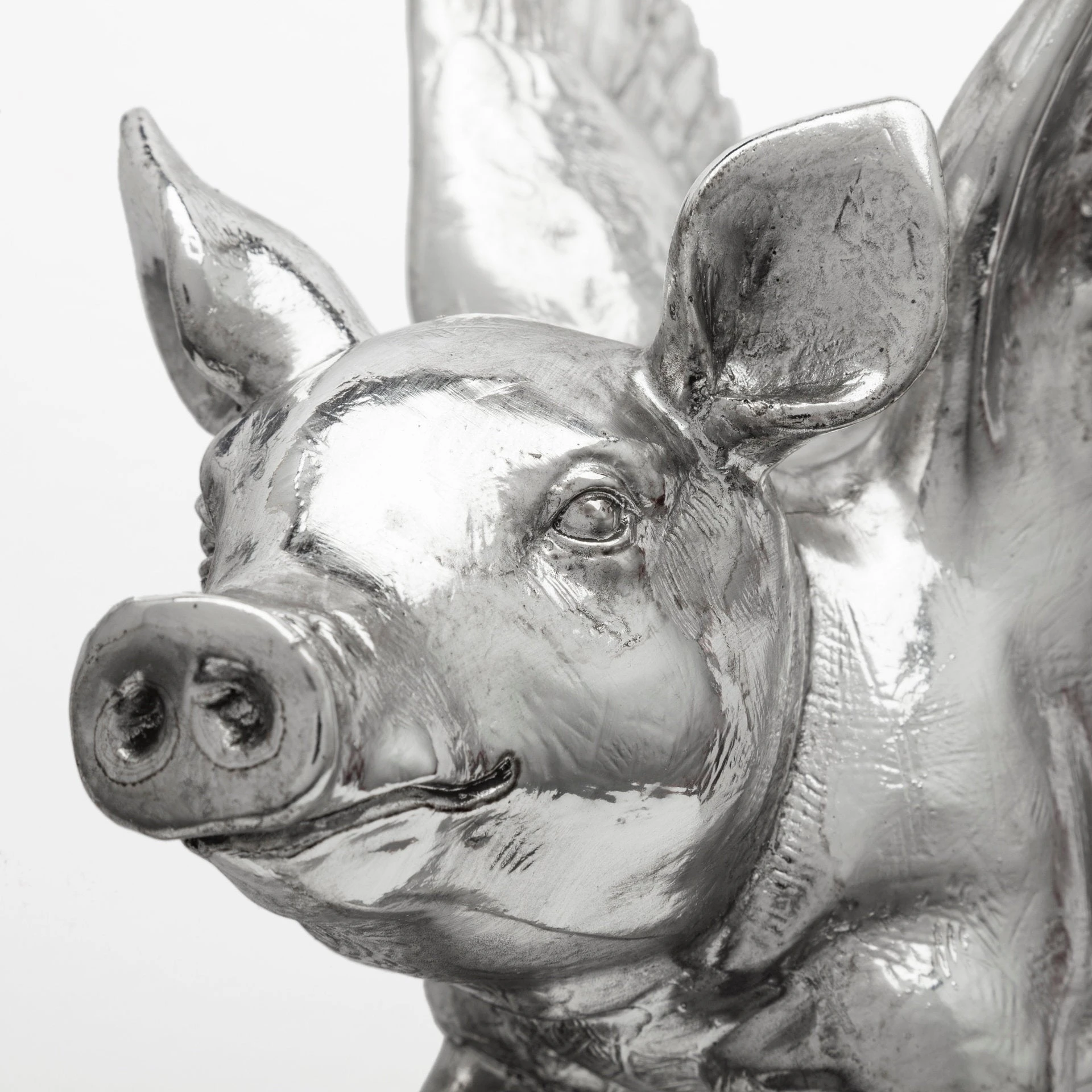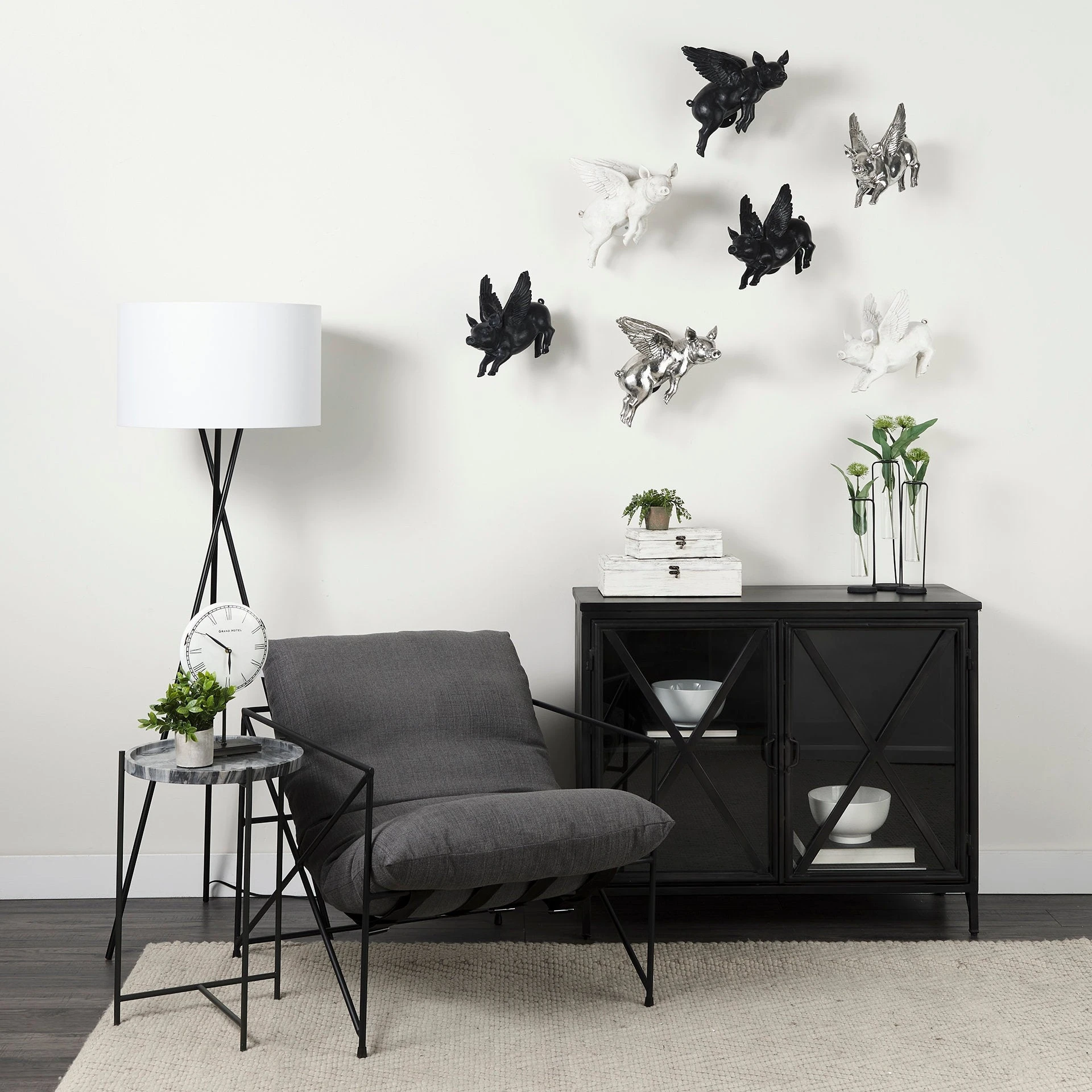 Enjoy the fanciful and whimsical allure of this two-piece wall decor on your living room’s wall. These wall accents channel a cheerful vibe as they showcase a pair of flying pigs finished in an almost chrome-like reflective silver, capturing the hyperbole of a popular phrase with an endearing design and display. Featuring adjustable wall mounts, this wall decor allows for a versatile installation.