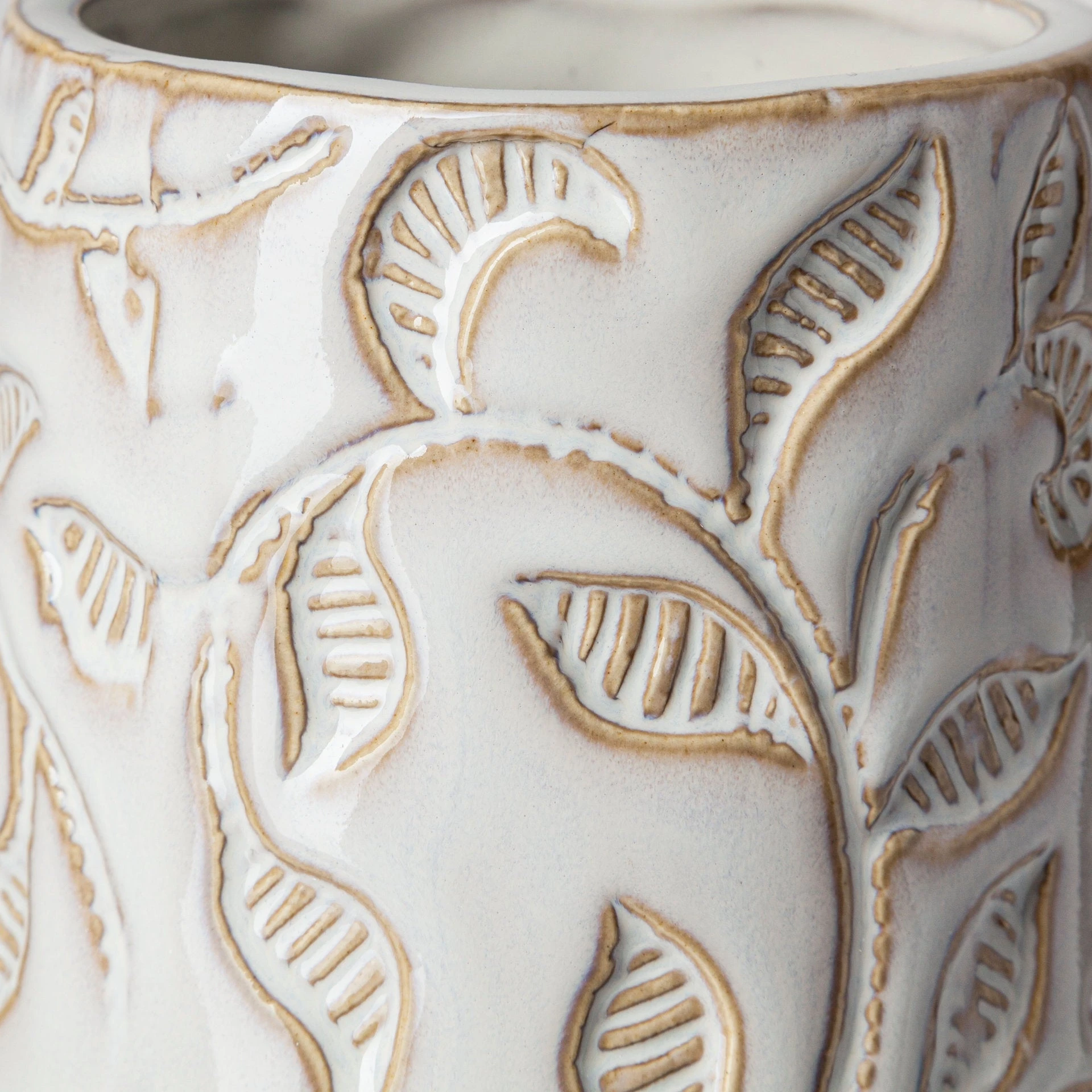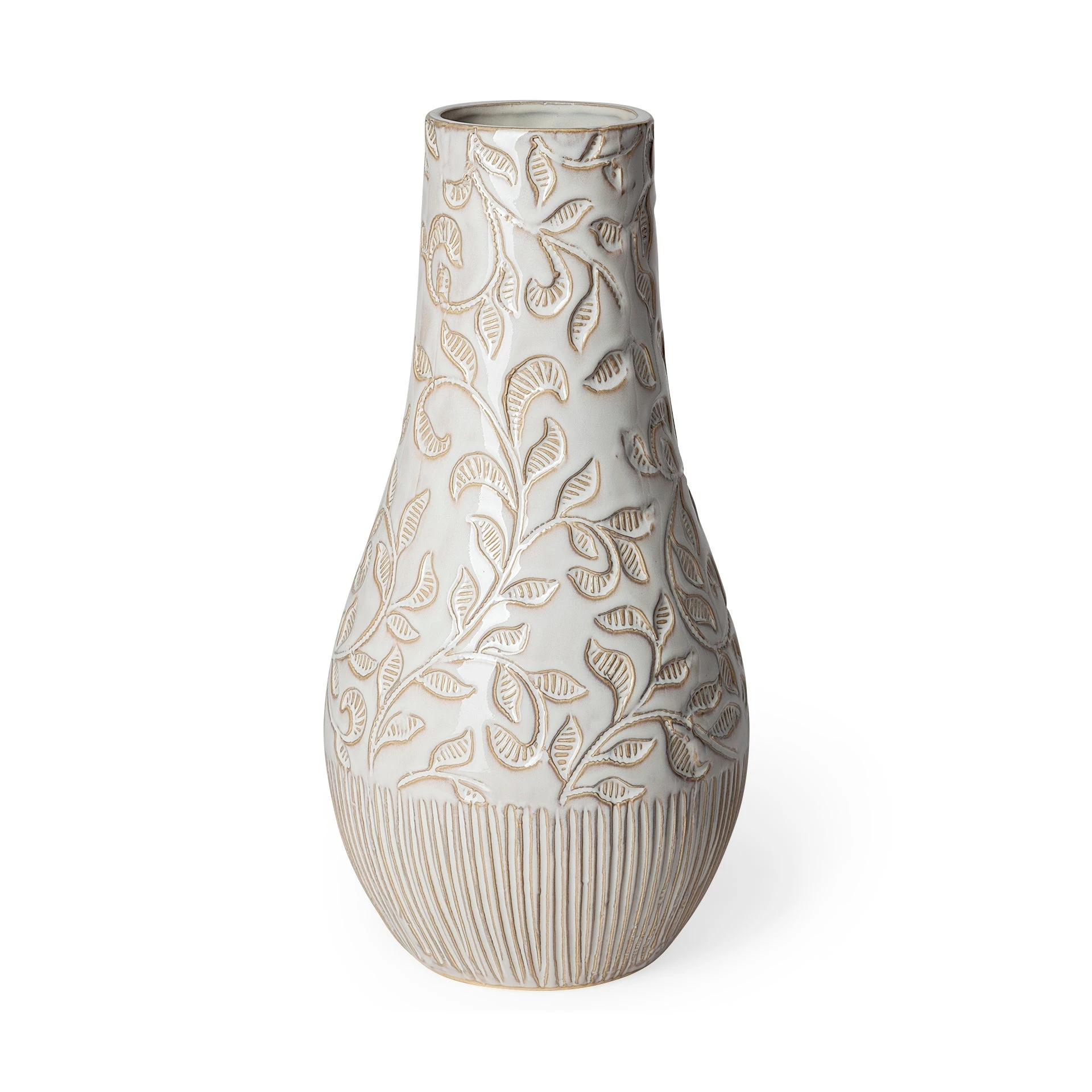 Meticulously crafted from ceramic and finished in an elegant white glaze, the Jadzia I is an exquisite, stout vase that features an intricate and graceful, embossed floral pattern. It looks great by itself or when paired with others from this series and is guaranteed to turn heads in spaces based on the Enduring Elegance and Global Curiosities design styles.