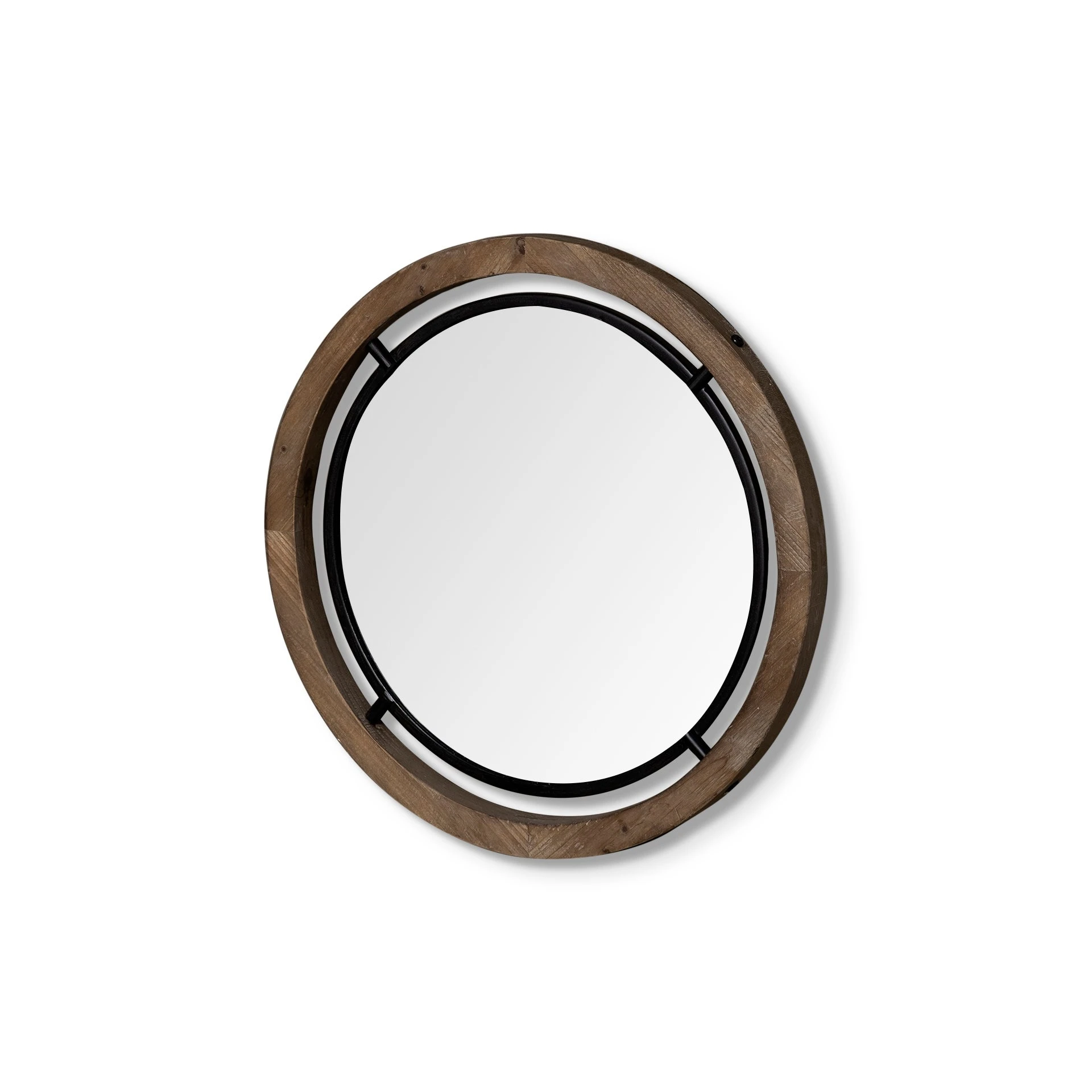 ย Exceptionally crafted from naturally finished wood and matte-black toned iron, the Josi I is a stylish, round mirror from the Josi series.ย It flaunts a round cut mirror glass with an iron frame that is attached to an outer wooden frame, emulating a concentric design. The Josi I is theย smallest of three mirrors in the Josi series and looks great by itself or when grouped with othersย from the series as a collection.ย