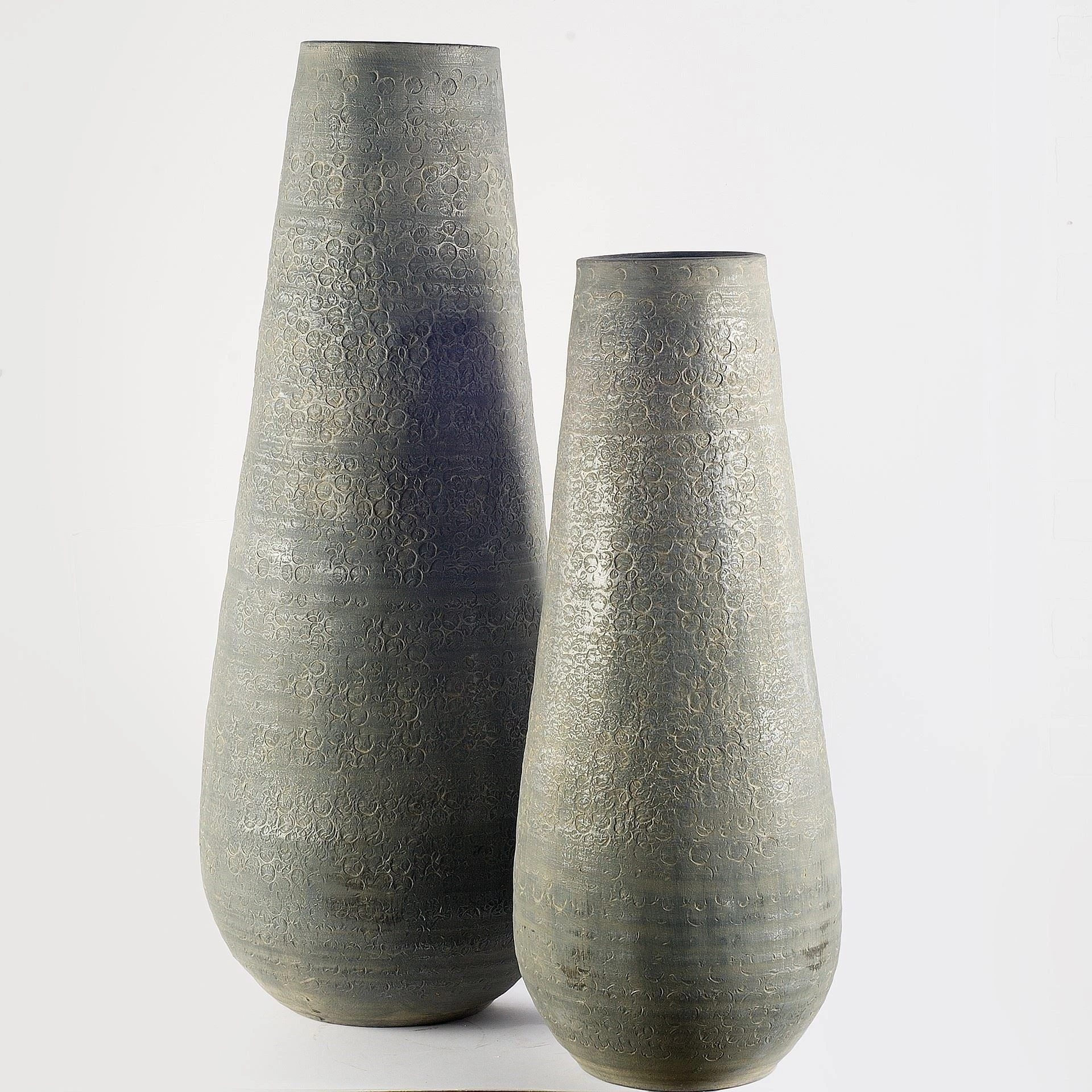 Kalahari is a beatuiful hand made ceramic floor vase with a unique grayish color scheme, and an open top. These look great on there own, can be used for umbrellas at an entrance hallway, or add some dried twigs, bamboo or some large flowers.