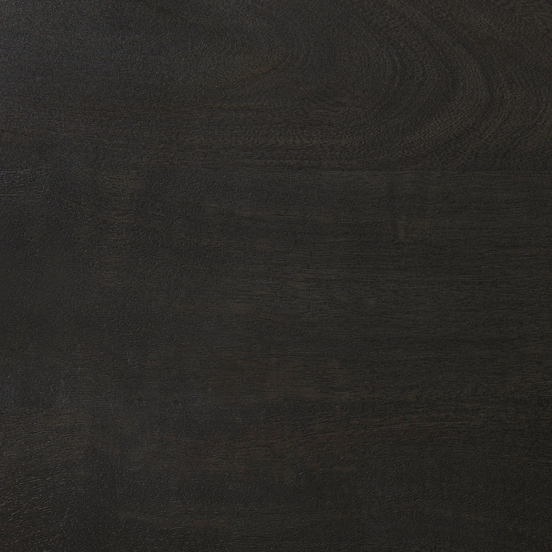 The wood is smooth textured in a black-stained finish with warm, brown undertones. The iron base features an unfussy, matte black finish.ย - Backless Benefits