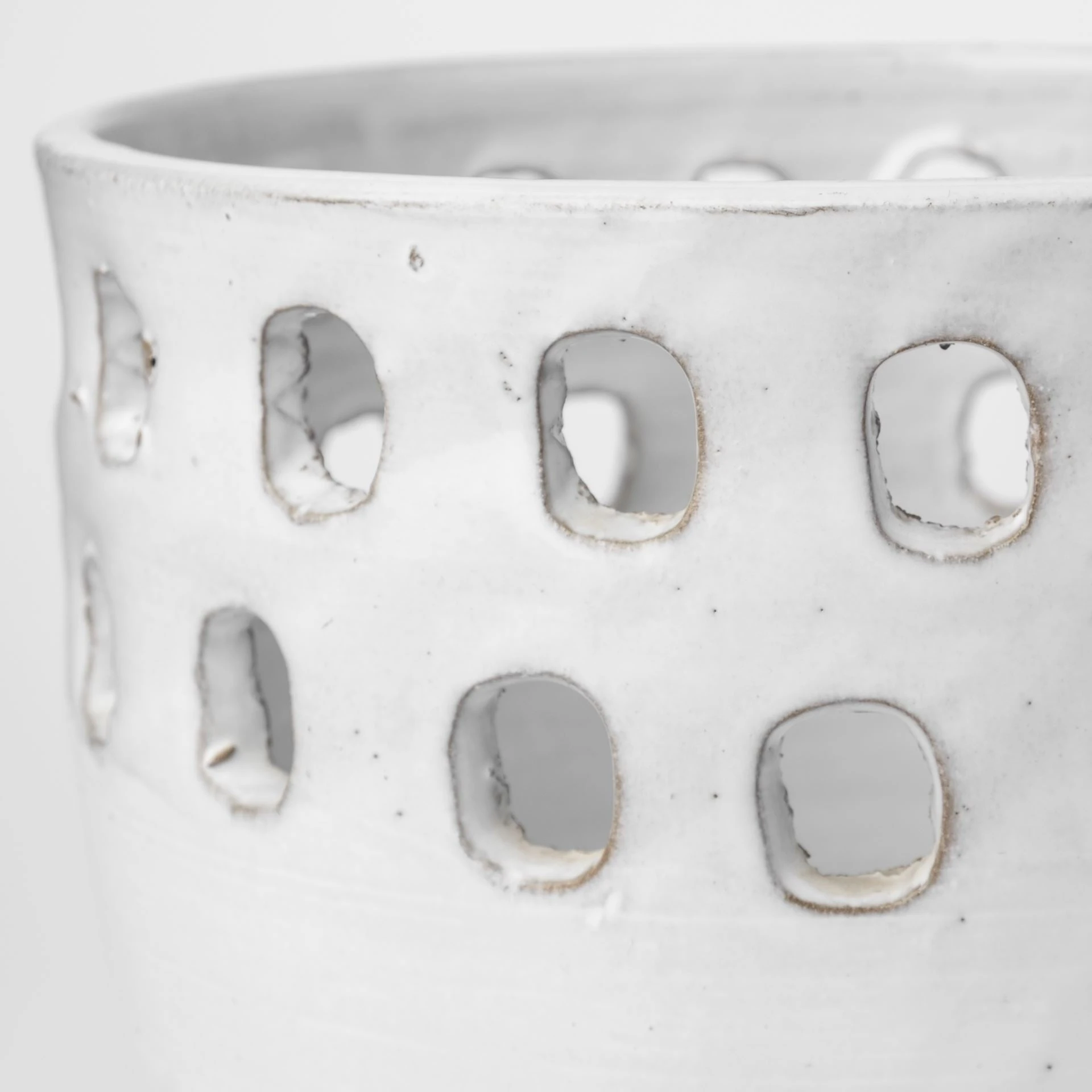 The Luanda is finished in a pearl-white tone with a hollowed-square pattern, making it a stunning vase that is sure to turn heads.ย - Modern/Coastal/Elegant Inspired Design