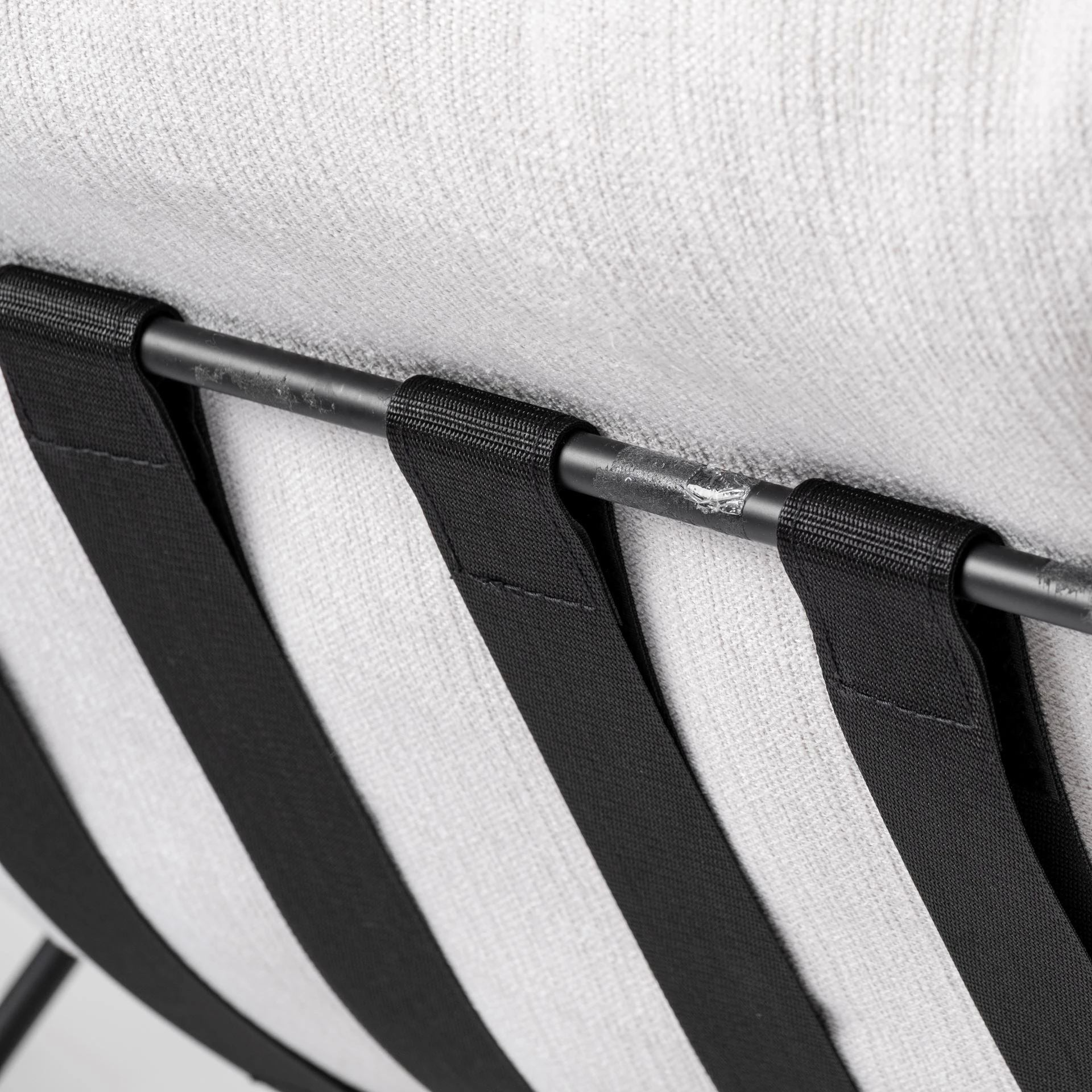 Rested on a sleek, four-legged iron frame finished in aย stunning matte-blackย polish,ย the Leonidasย armchairย is stable, exceptionally sturdy and is built to stand the test of time.ย - Plush Fabric Wrap