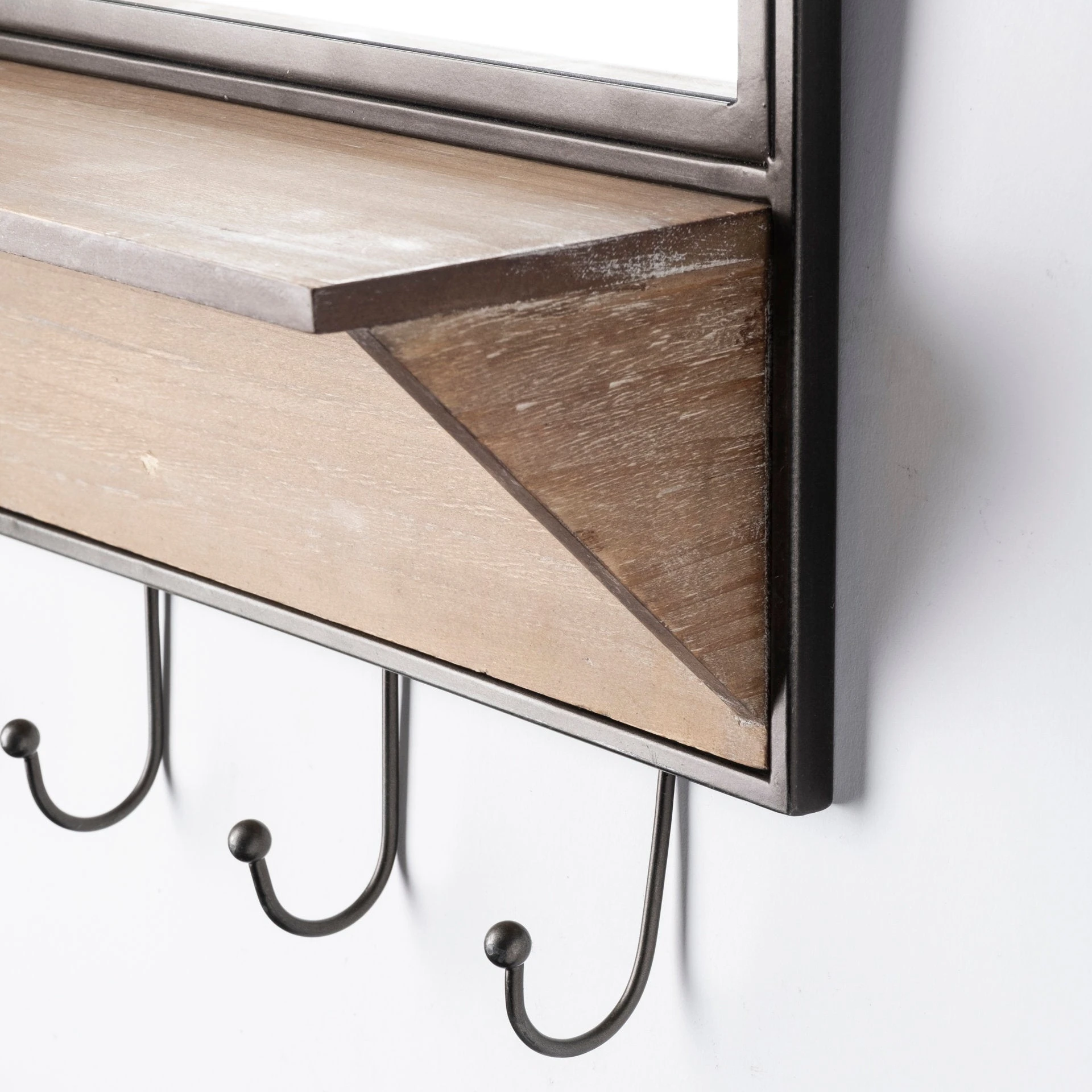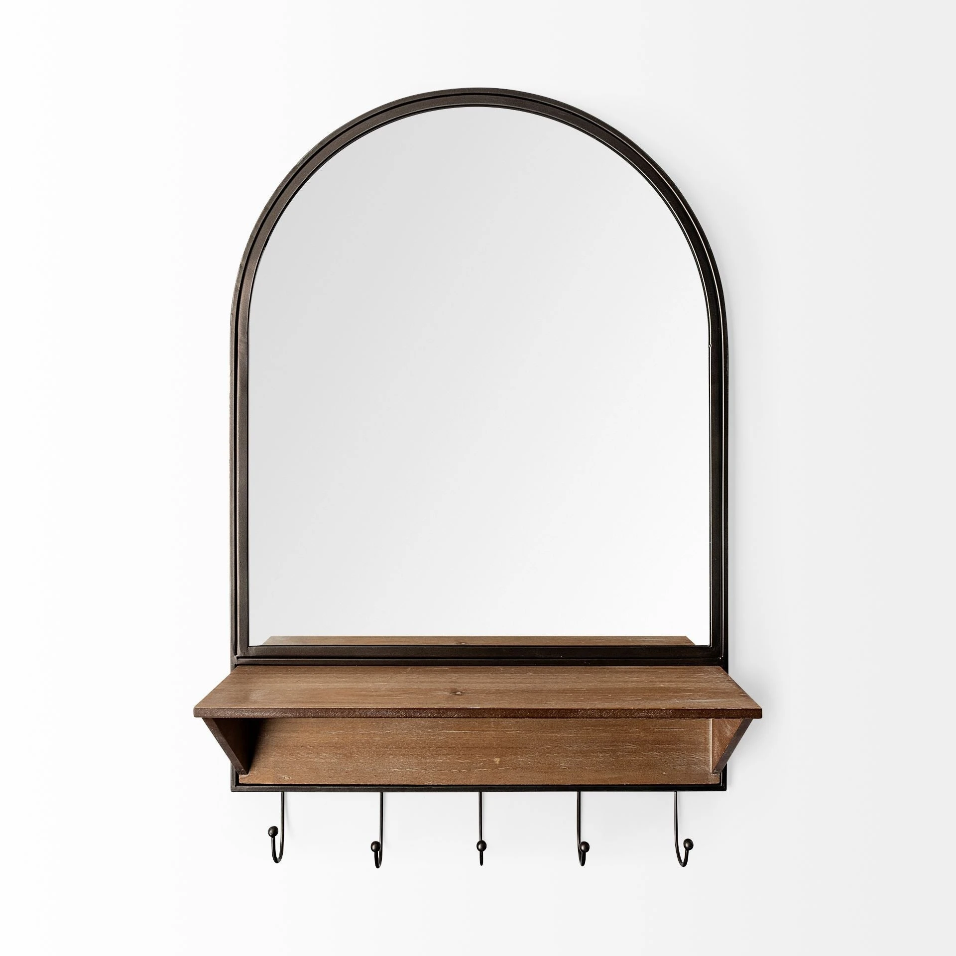 Crafted from metal and wood, the Neville is a stunning, oval-shaped wall mounted mirror featuring a shelf in addition to five hooks that can host keys and other small artifacts. The Neville flaunts a minimal design that ensures it is a good fit in any space and setting.