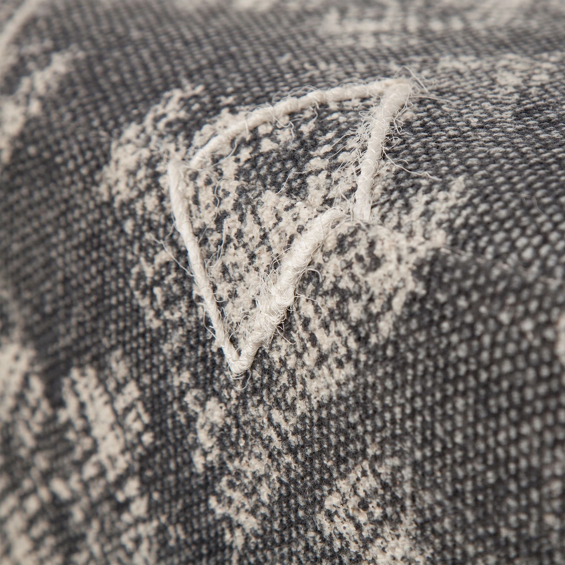 Wrapped in plush, charcoal toned fabric, the Pallu ottoman is a stunning addition to any living room and is great for when you need extra seating. This ottoman is rested on a solid wood base that ensures stability and balance.ย - Elegant Design with Intricate Pattern