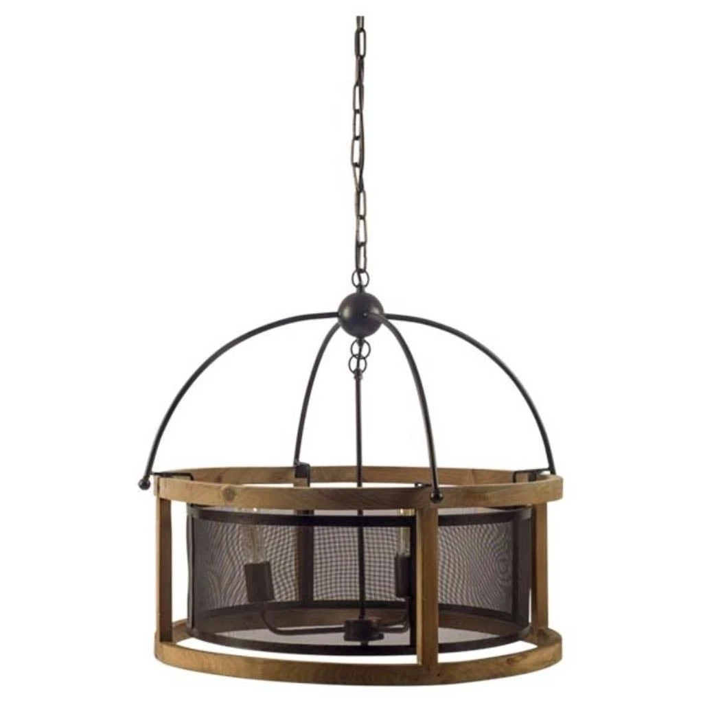 The Penhill is a stunning chandelier that looks great in any dining area, foyer or entrance. It features a hollow, drum-shaped, natural brown polished wooden chassis. Inside the wooden chassis is a candle-style bulb fixture that uses three, 60-Watt, standard E26 bulbs (Sold Separately) and is covered by a matte-black toned, meshed metal shade. The fixture is suspended by an adjustable 42? long chain and fits perfectly in spaces based on the Industrial, Farmhouse or Coastal design styles.