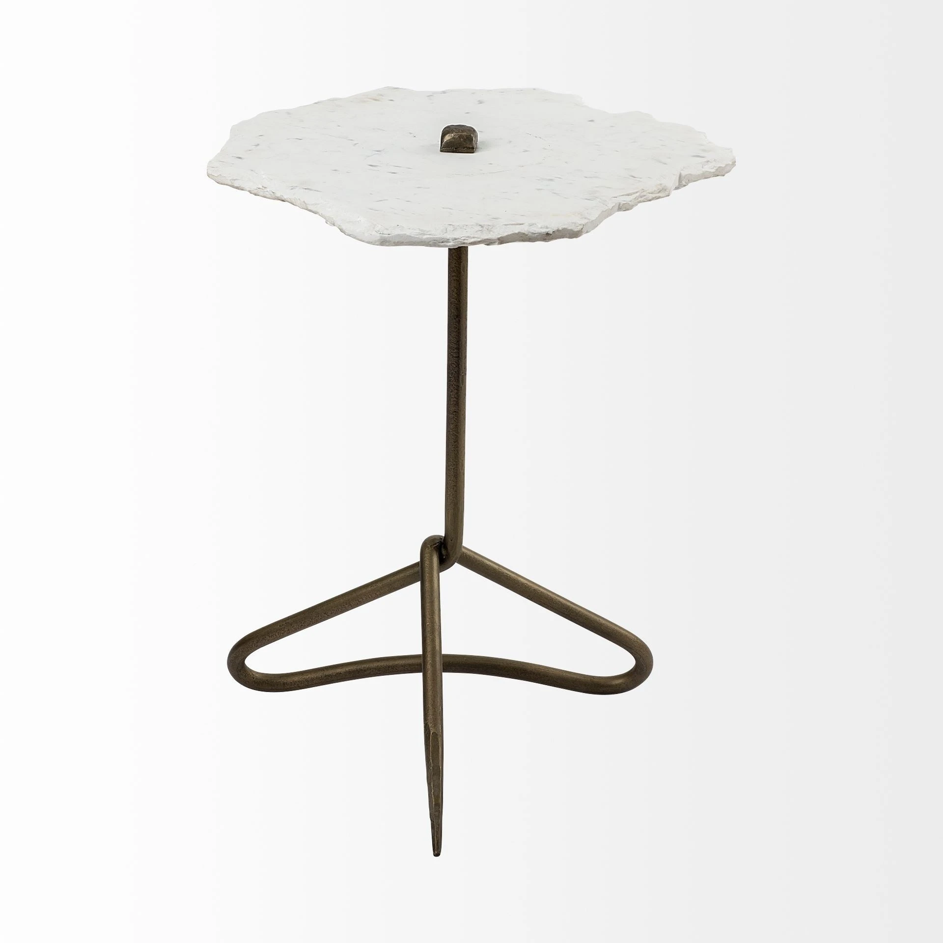The Pinera II, an accent table crafted from gold-toned iron and white marble, is exceptionally stable and makes for a sturdy and substantial addition to your space. - Rustic Marble Round Top