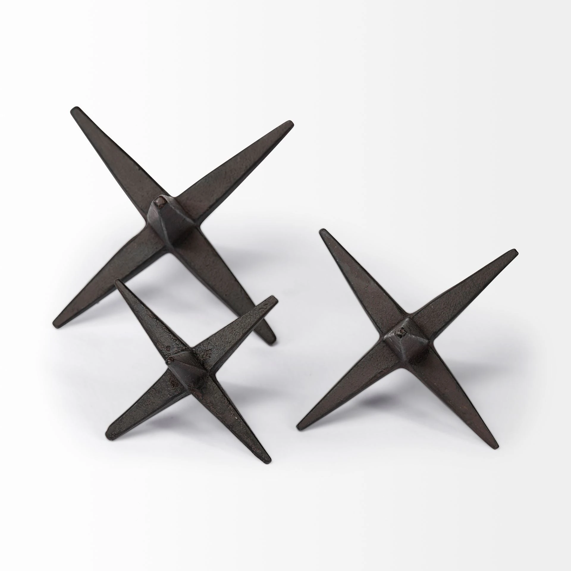 The Rhea is a set of three stunning decorative objects crafted from cast metal and finished in a dark brown tone, that looks great in spaces based on the Industrial or Mercana Modern design styles.