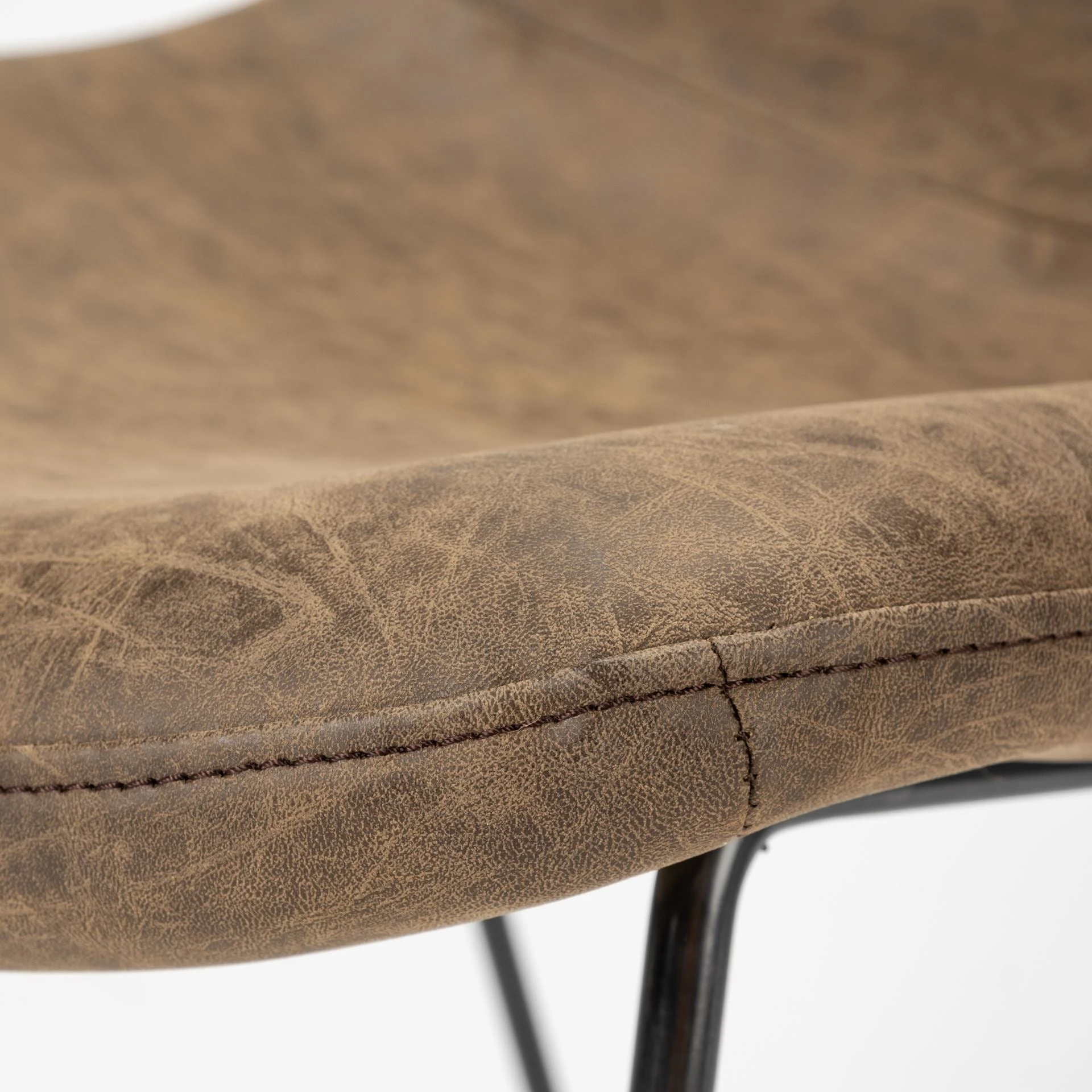 The Finn II is a stunning side chair featuring a perfectly padded, brown faux-leather seat that is braced by a sleek metal frame. The pipe-style frame, made from matte-black polished iron, provides stability and sturdiness, guaranteeing a pleasant and comfortable dining experience. The Finn II is simple, yet stylish and looks great with almost any dining table, especially in spaces based on the Mercana Modern, Woodlands and Industrial design styles.