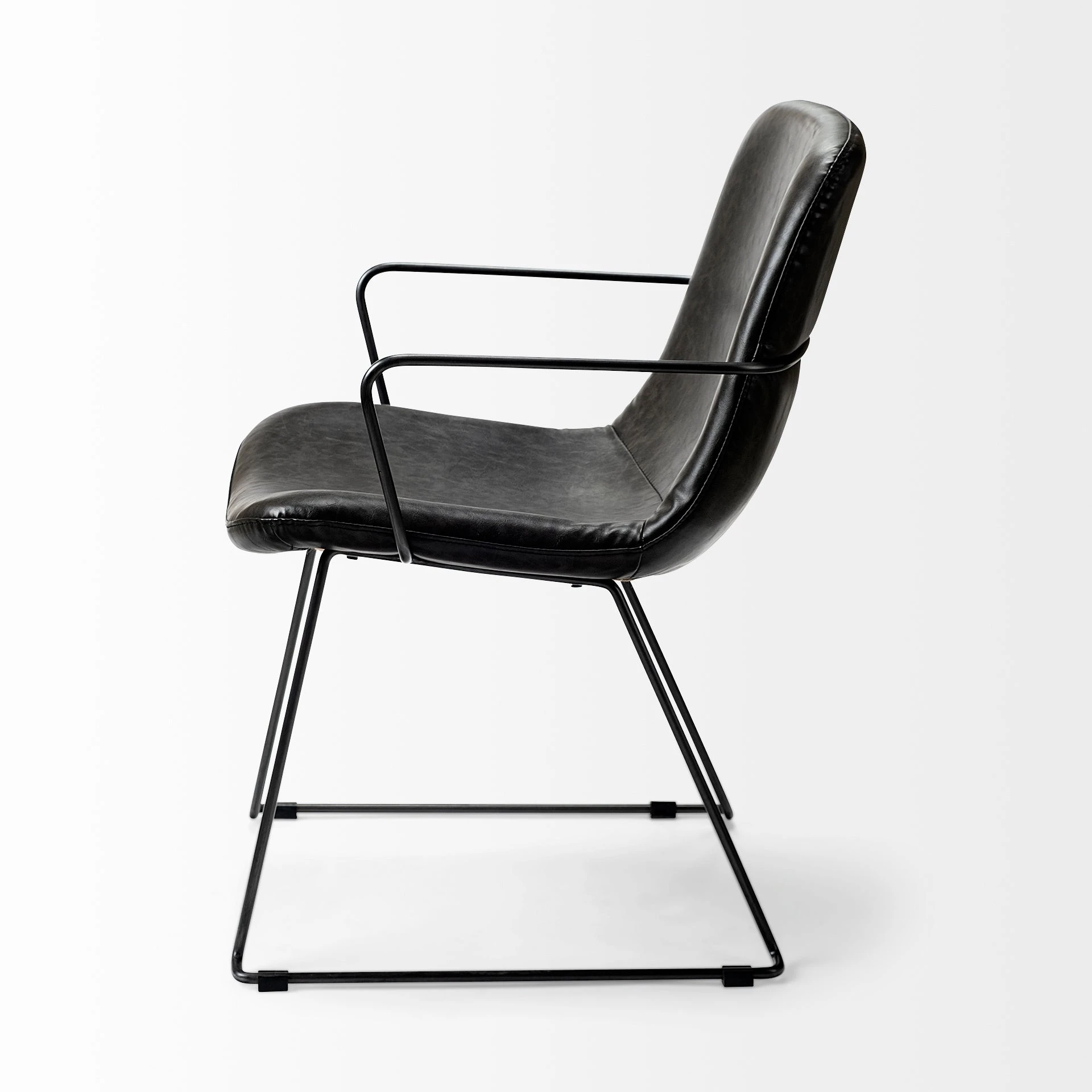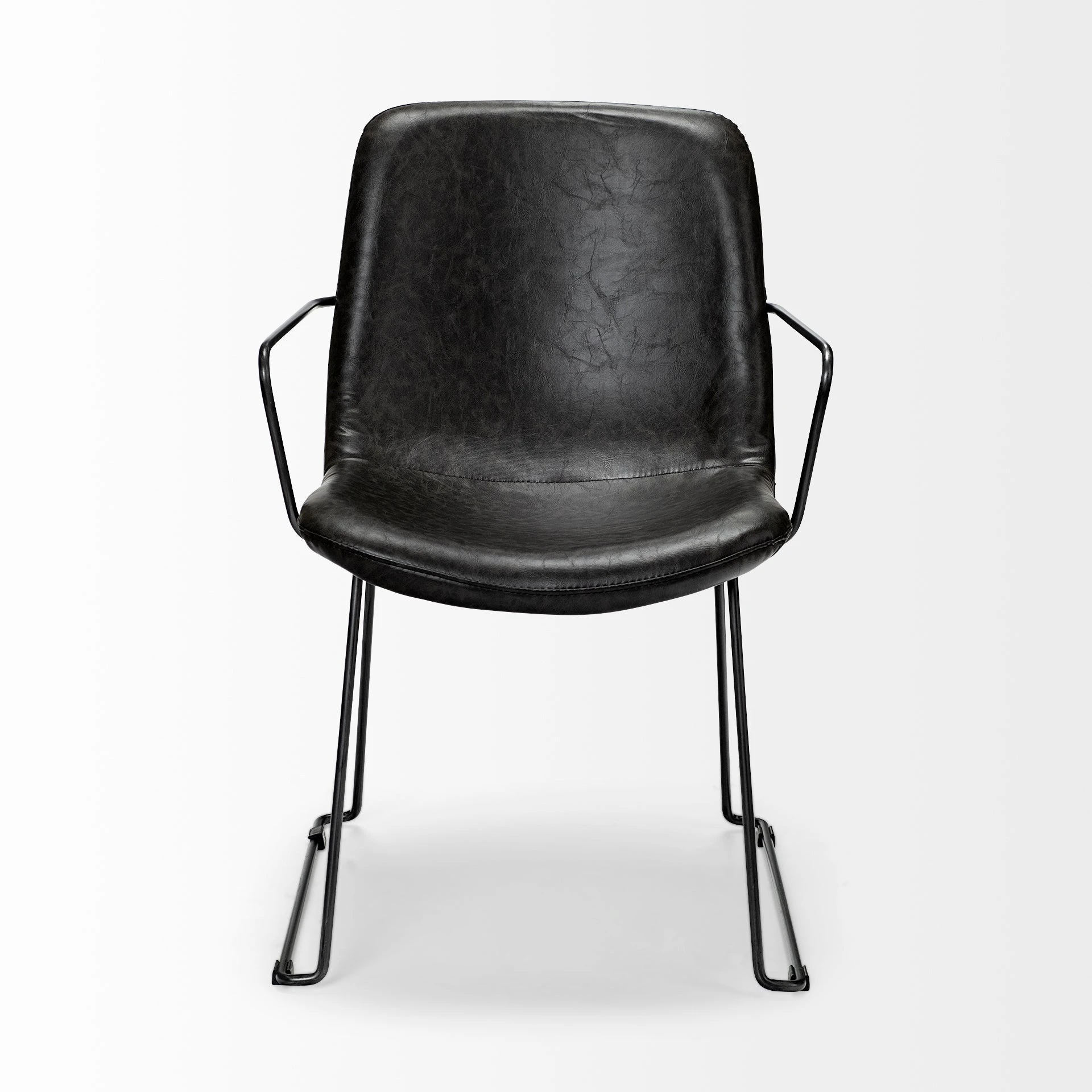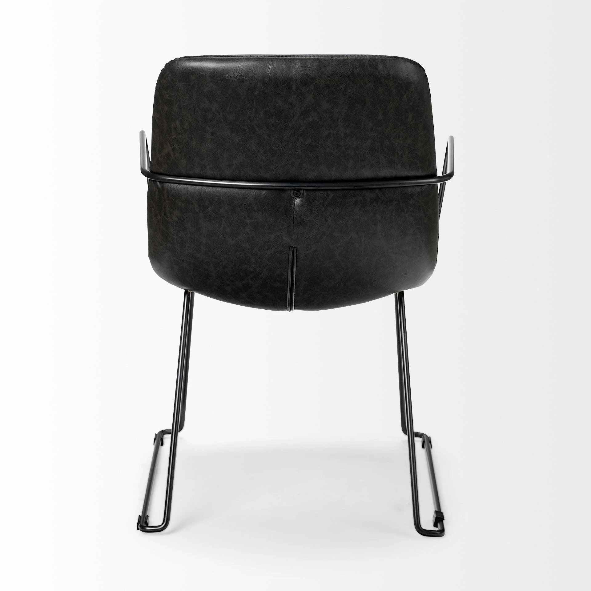The Sawyer II is a posh chair that features faux-leather seating and backrest mounted on a sleek, matte-black toned iron frame. The sleek, pipe-style frame on the Sawyer II is molded such that it extends to provide armrests resulting in a comfortable dining experience. The slate toned faux-leather upholstery complements the matte-black toned metal frame and makes the Sawyer II a great fit for spaces based on the Mercana Modern and Industrial design styles.ย