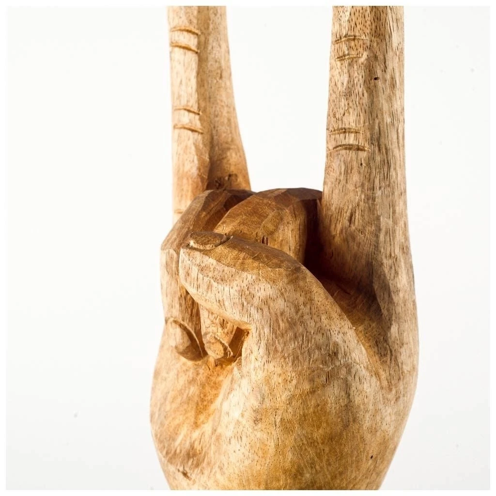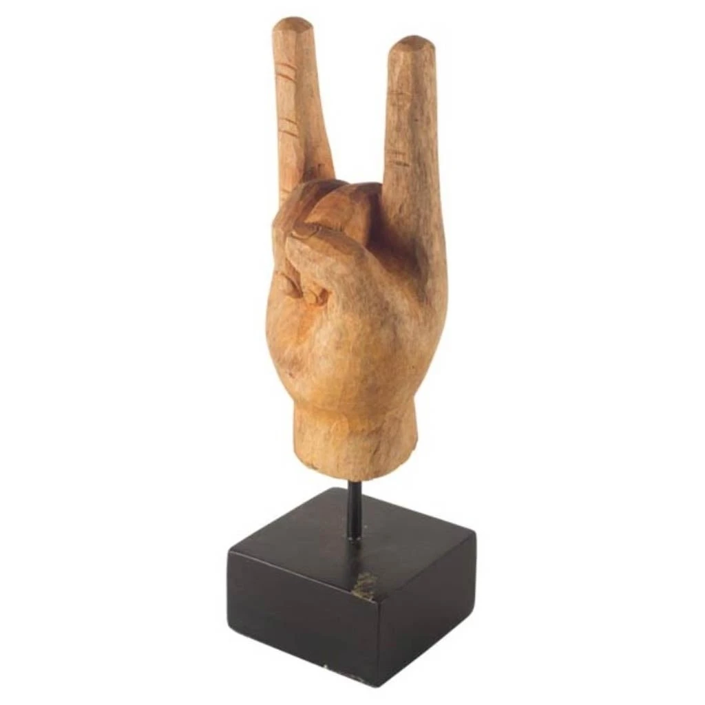 Wooden hand in a “hang loose” sign…or showing 2. You make the call.