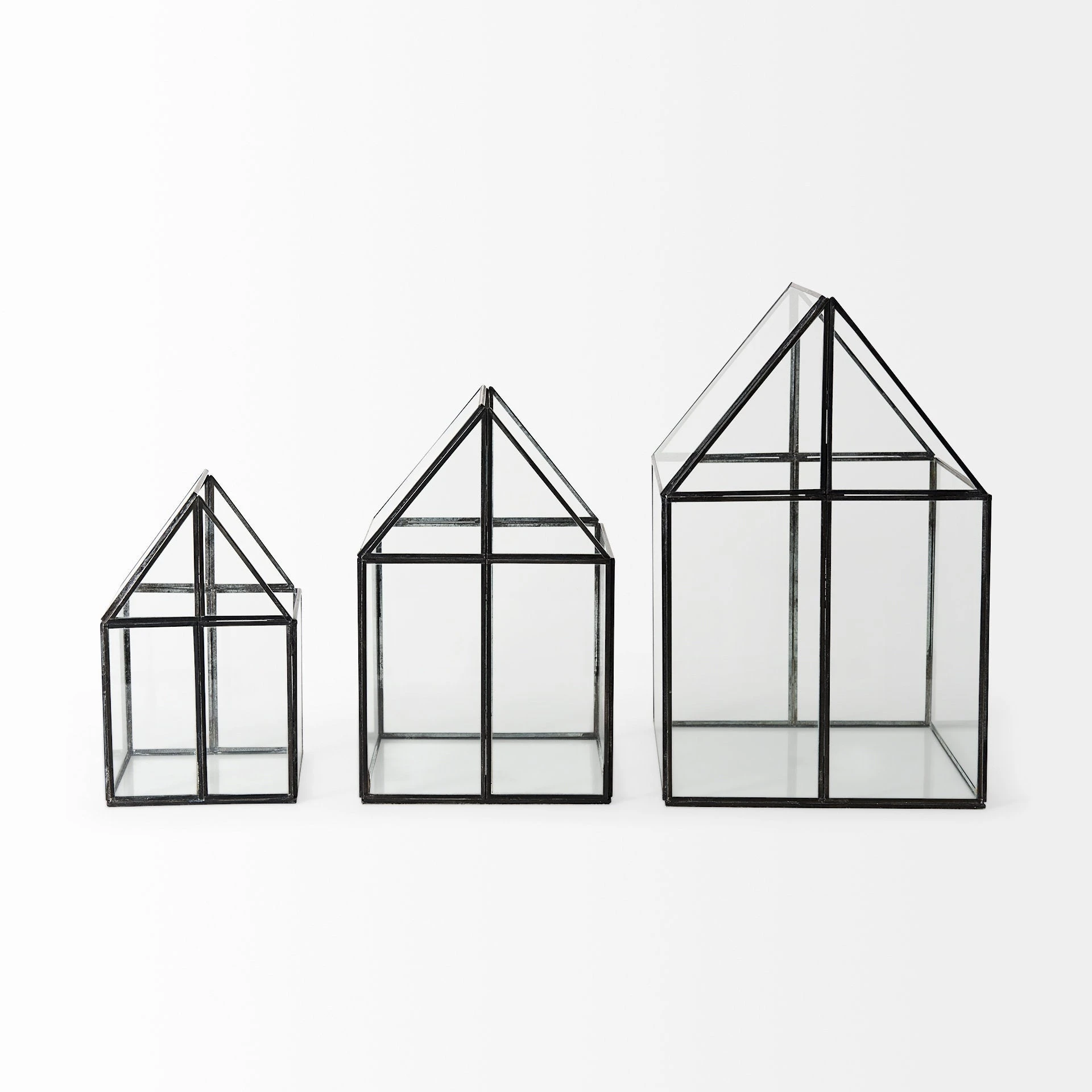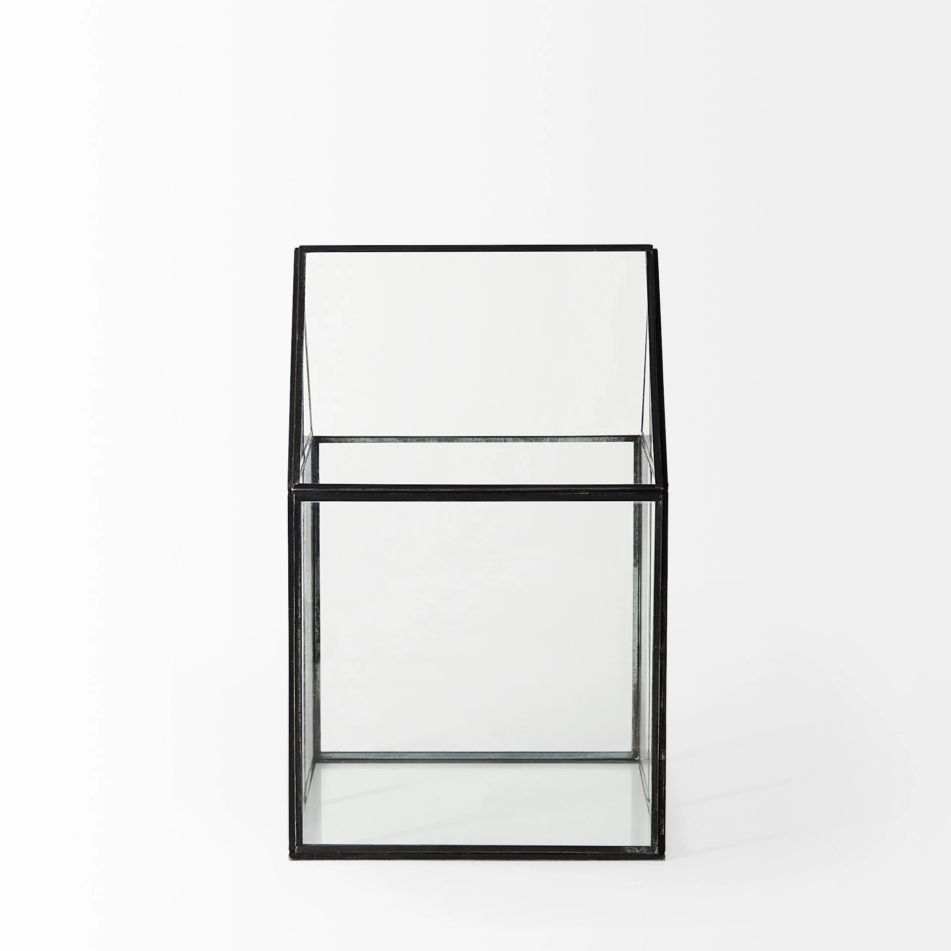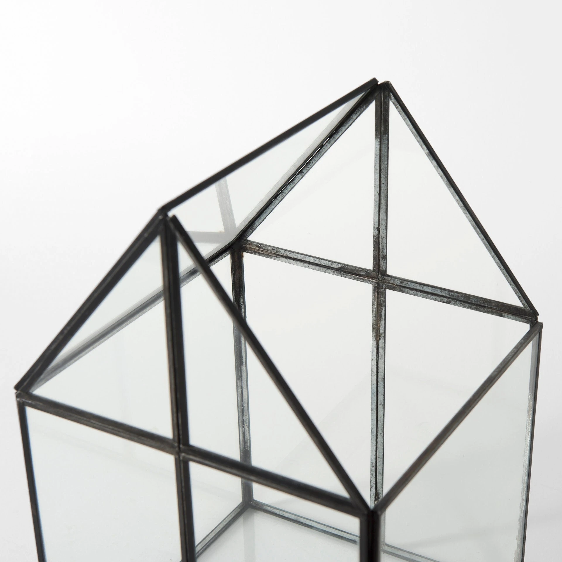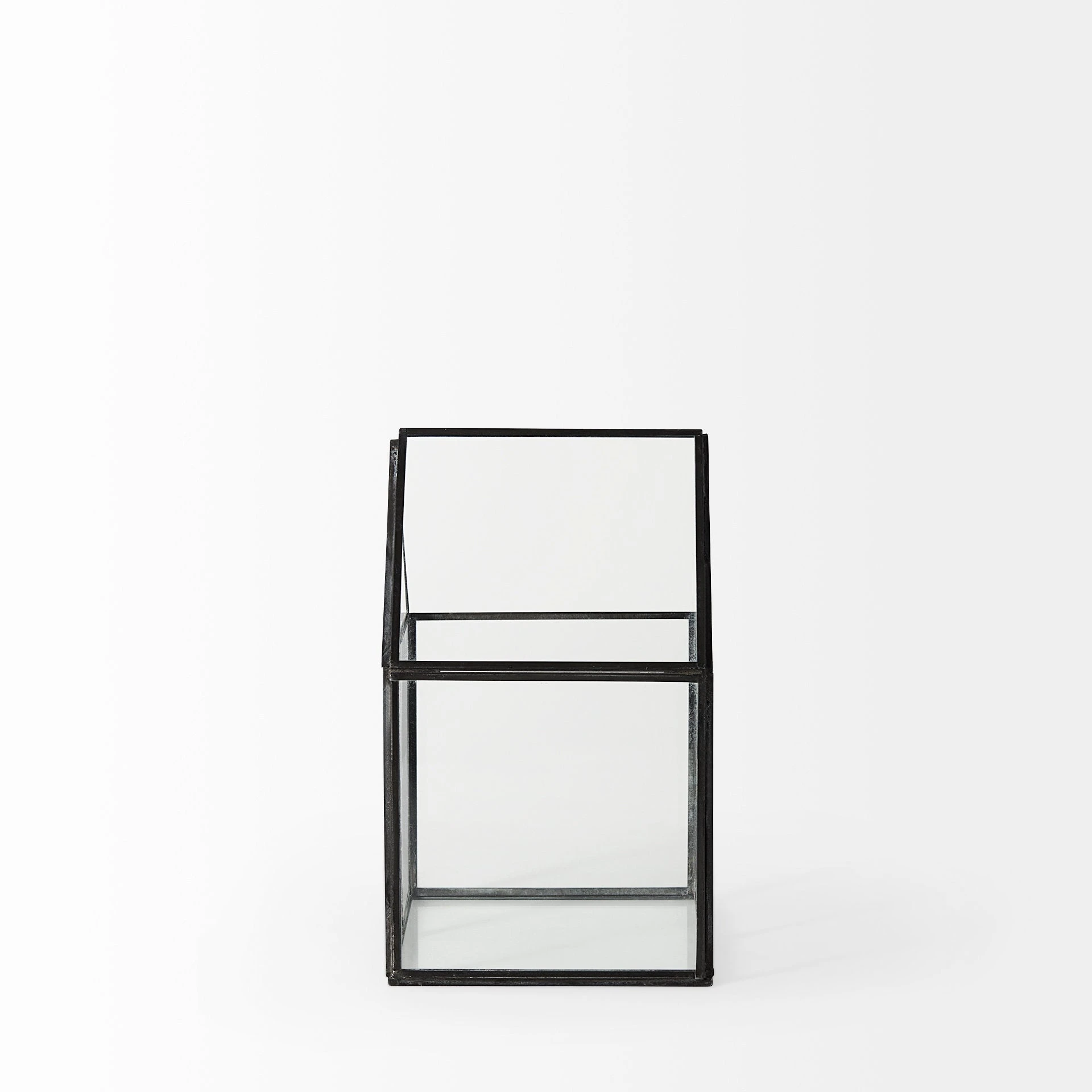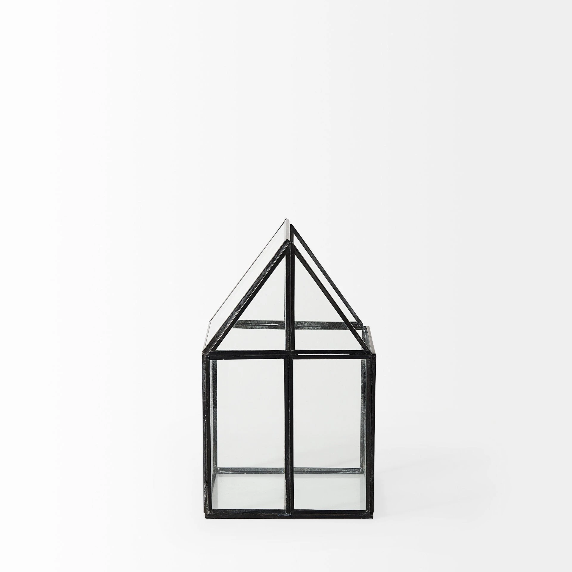 The Sikes, a house-shaped terrarium with transparent glass walls in a metal frame, provides endless decorative storage possibilities!