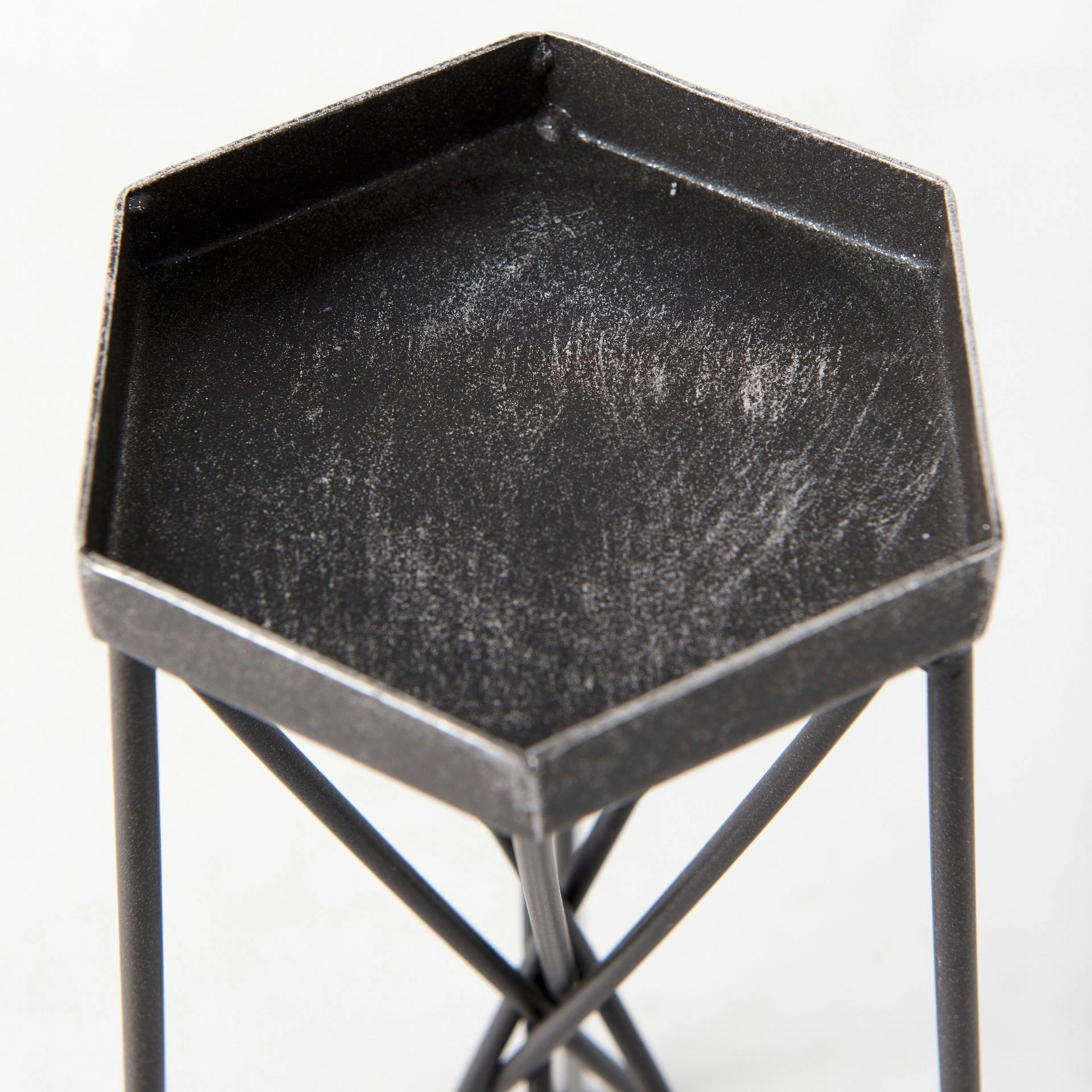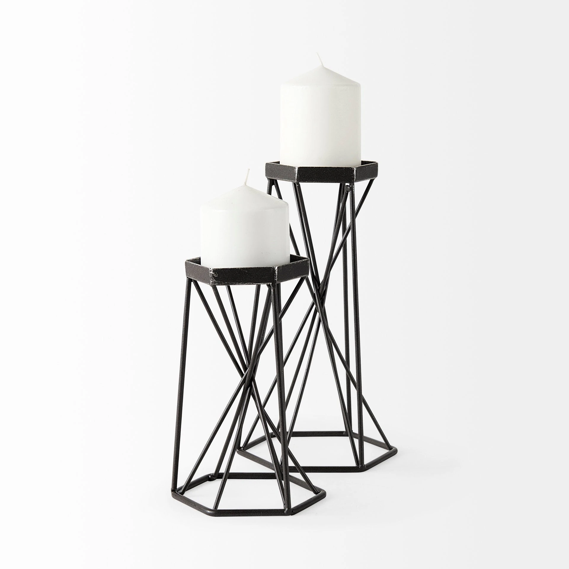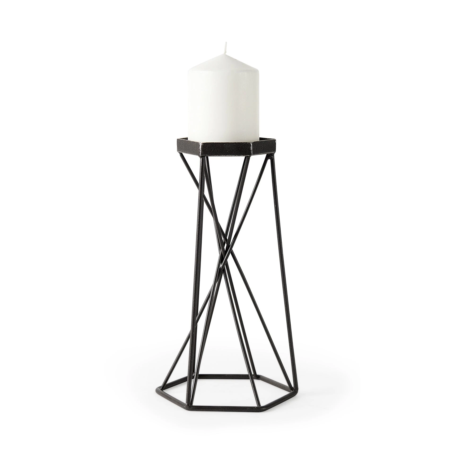Sixx is a series of hexagonal shaped metal candle holders, that are perched on a classy crossed metal rod stands that add a unique look to them. The look great on their own, but even better in a pair.