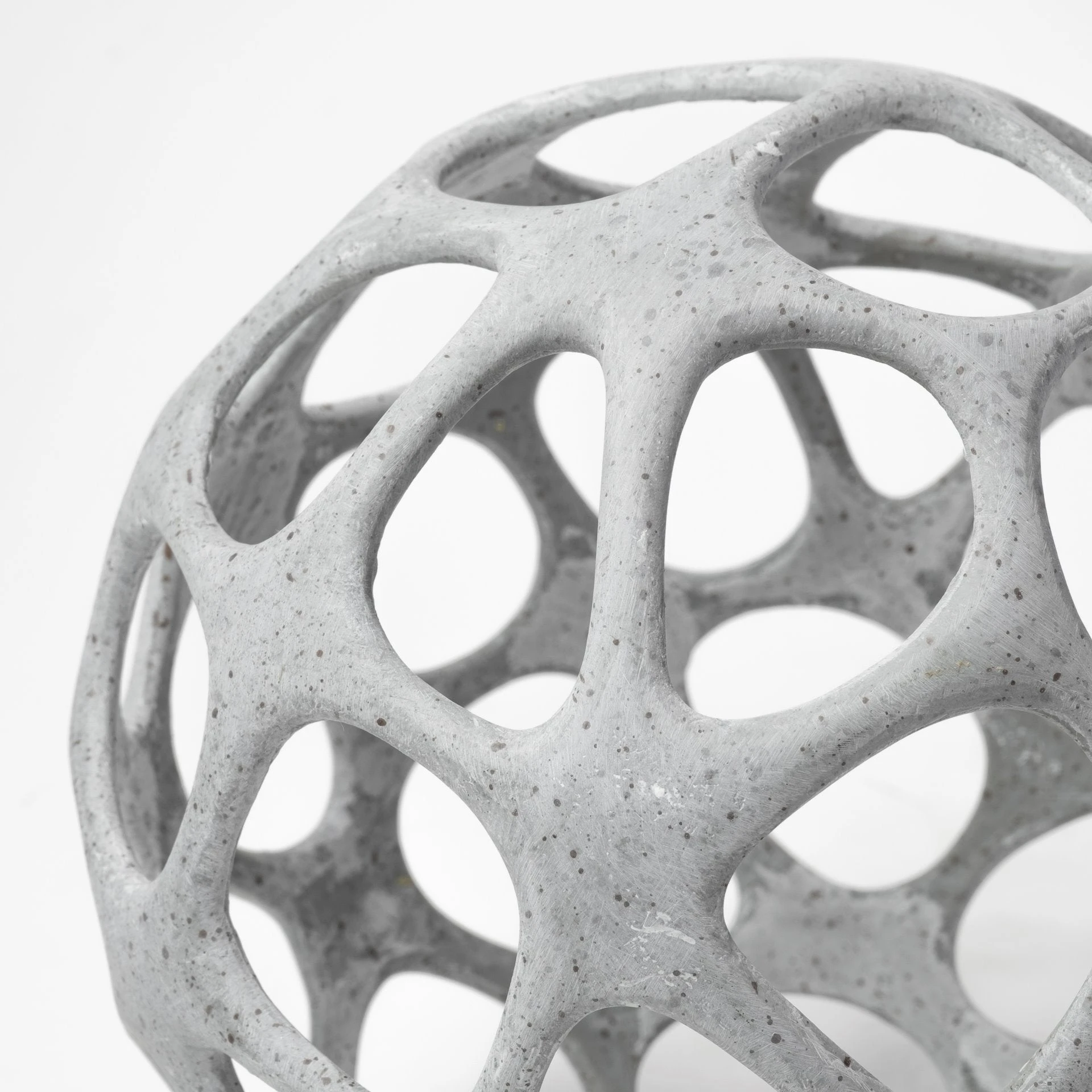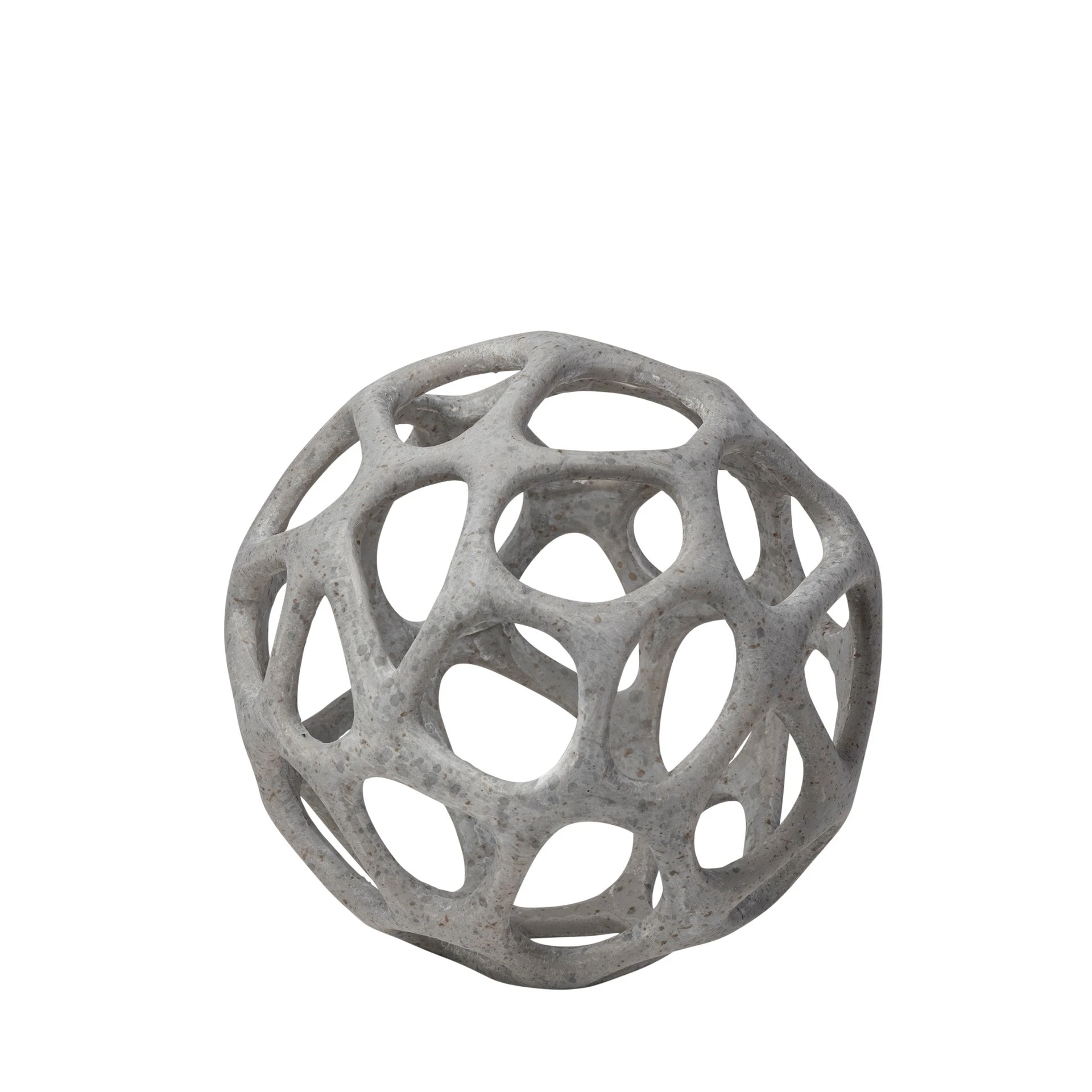 Crafted from resin finished in a rustic white polish, the Spiro is a hollow, decorative orb with irregular hexagonal cutouts. It looks great by itself or when paired with the other pieces in this series, especially in spaces based on the Enduring Elegance or Industrial design styles.