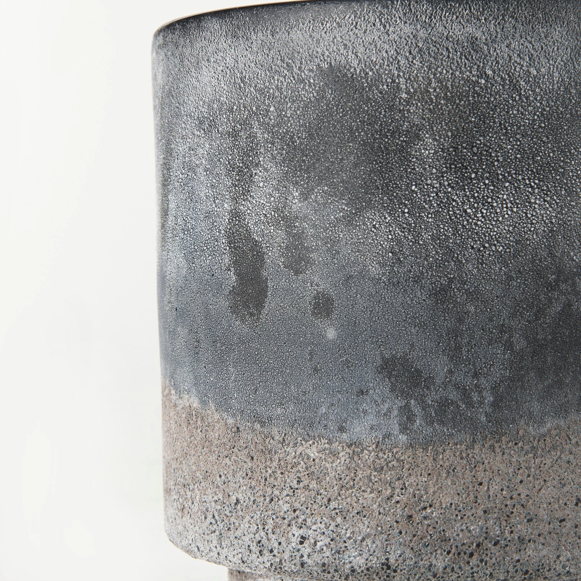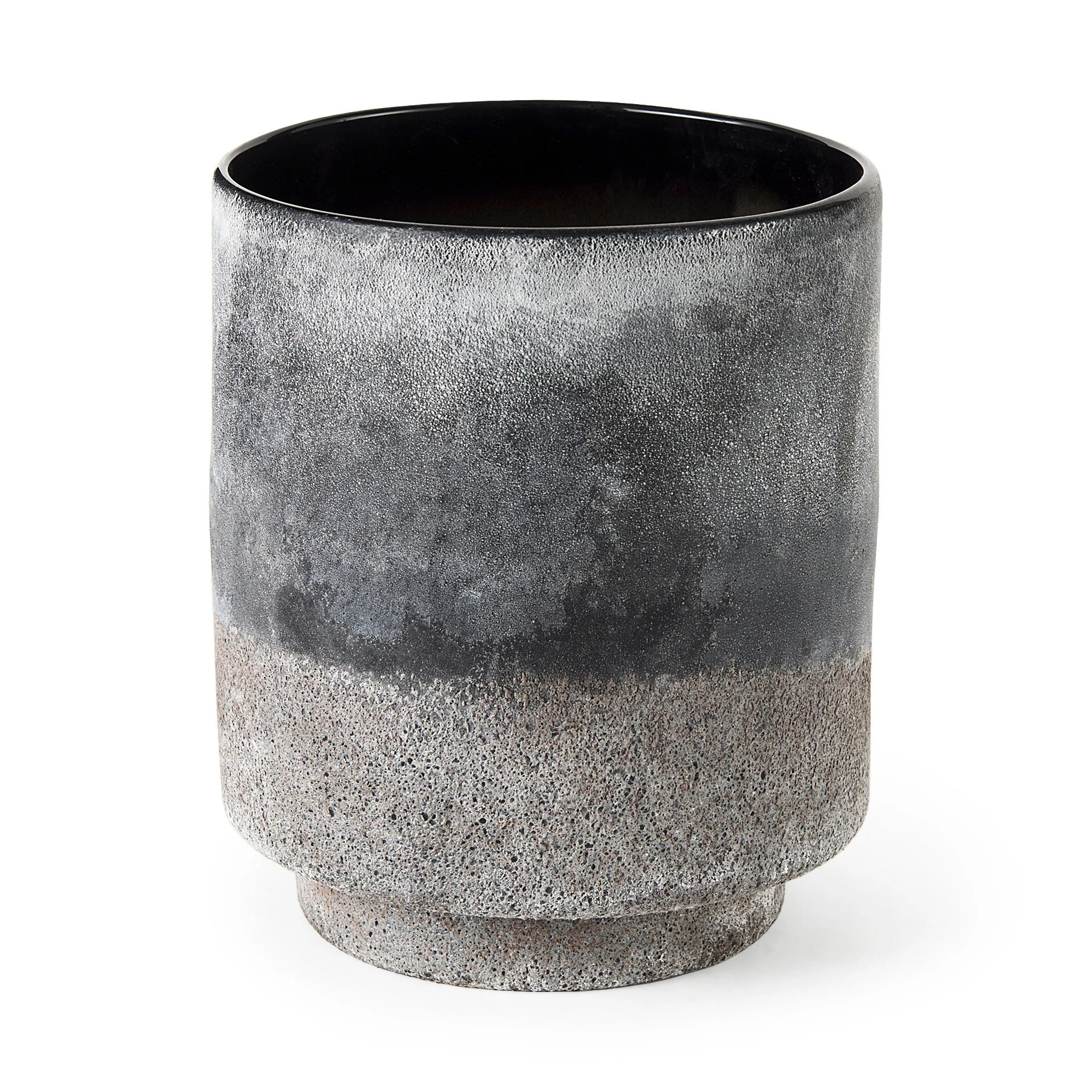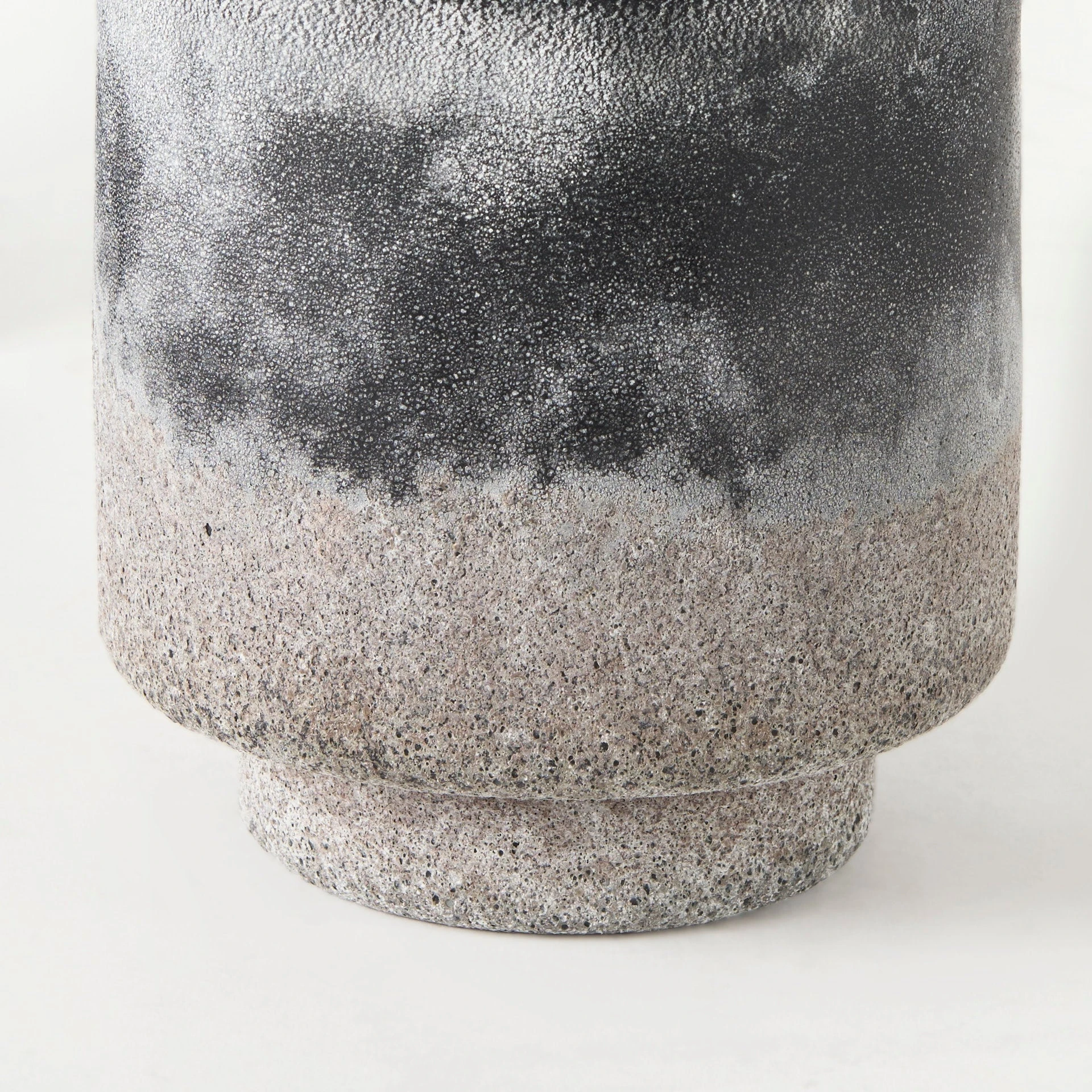 The Squally is a small vase measuring 6.0″ long by 6.0″ wide by 6.4″ high.ย The Squally is crafted with glass and ceramic, and is smooth on the interior, and shows off a textured surface on the exterior.ย The Squally has a speckled black and light brown finish, that is designed to have a unique Ombre effect.ย Featuring speckled color and ombre design, this vase makes for a gorgeous addition to spaces based on the modern/tropical design style.