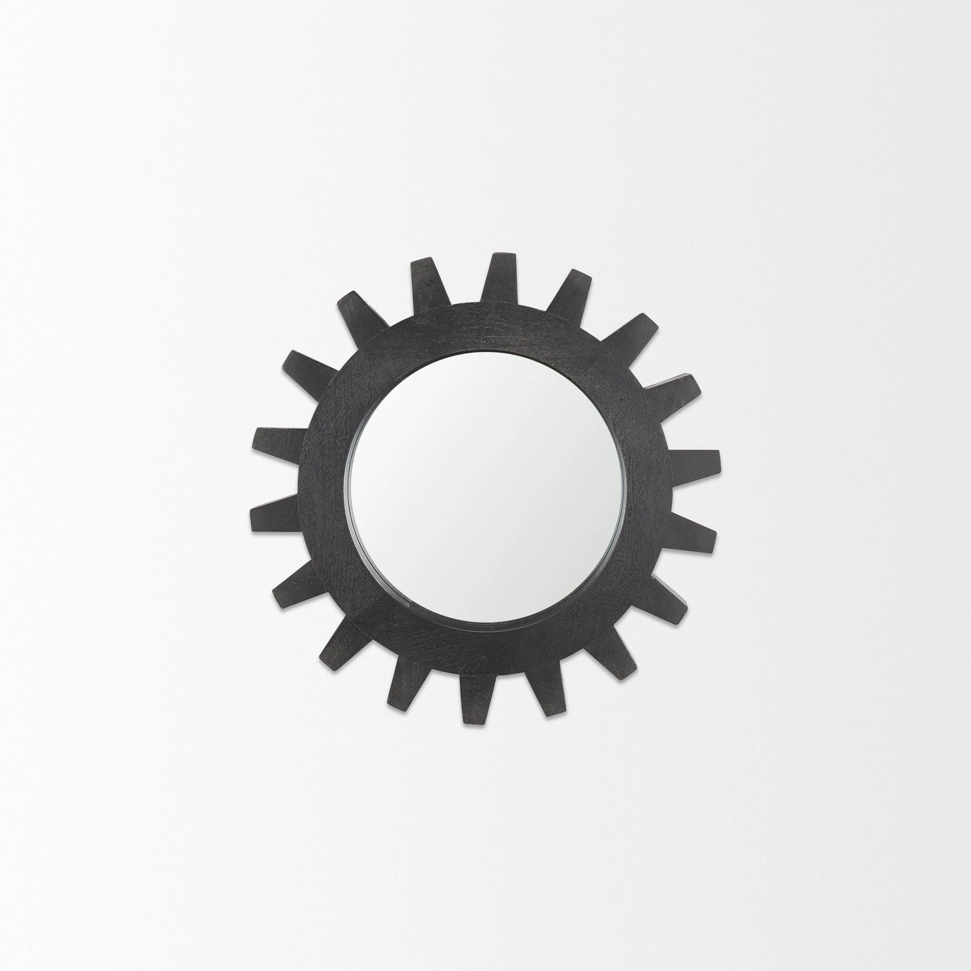 ย Crafted from wood and finished inย a matte-black finish, the Sundance Cog III is a stunning round mirror with triangular, cog-like grooves on the frame. Spanning 17″ in diameter, thisย stylish wall mirror looks gorgeous by itself or when grouped with others in the Cog Mirror series as a collection, especially in spaces based on theย Industrial design styles.ย ย