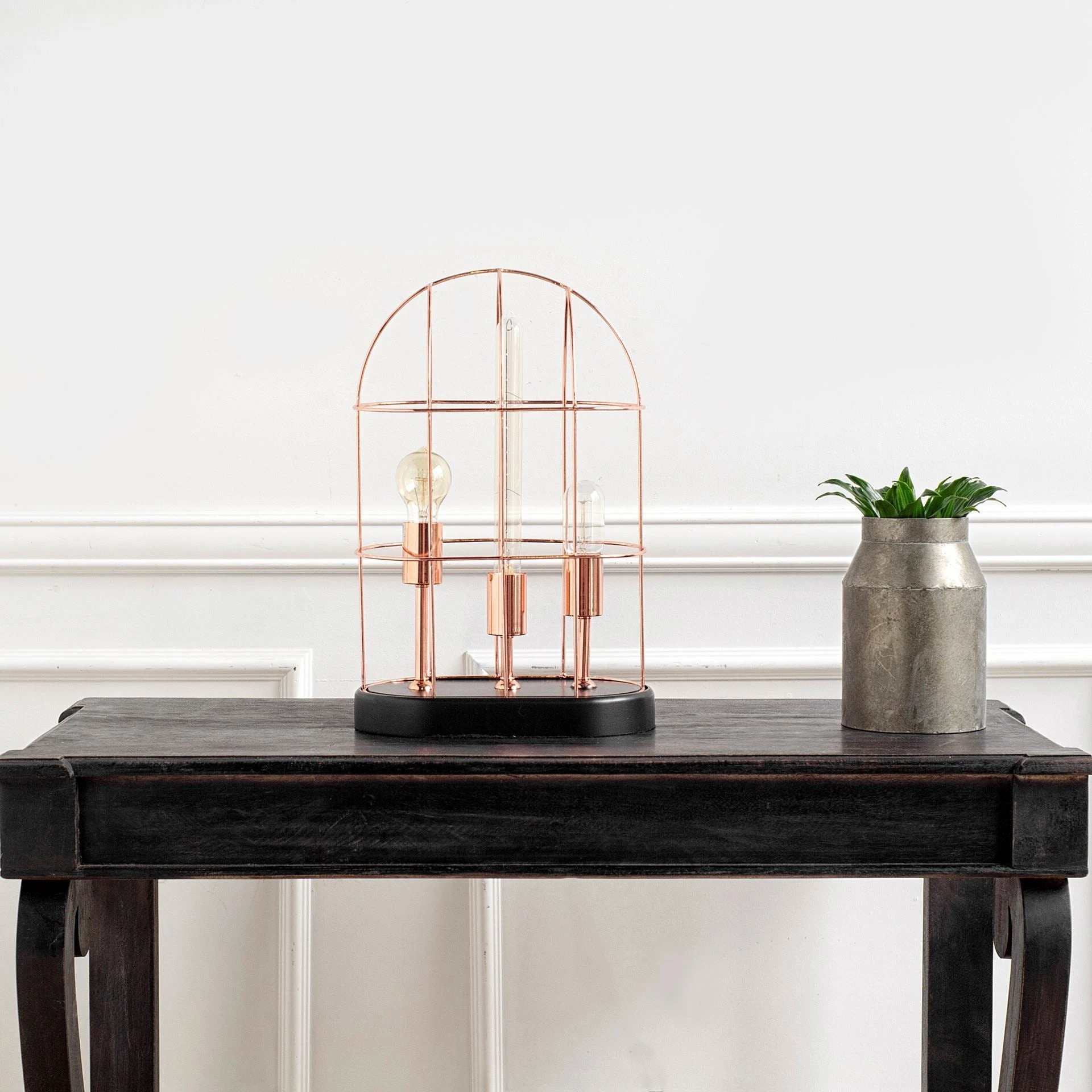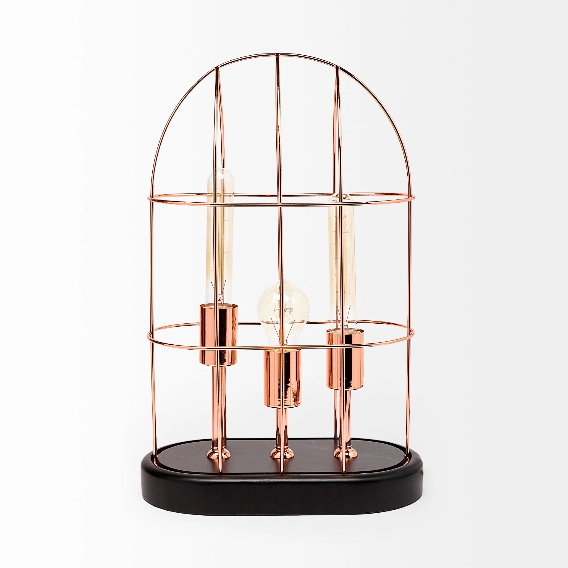 Featuring a rose gold polished cage rested upon a black base, the Sutton is a spectacular lamp that boasts of a dazzling design.Β - Beautiful Illumination