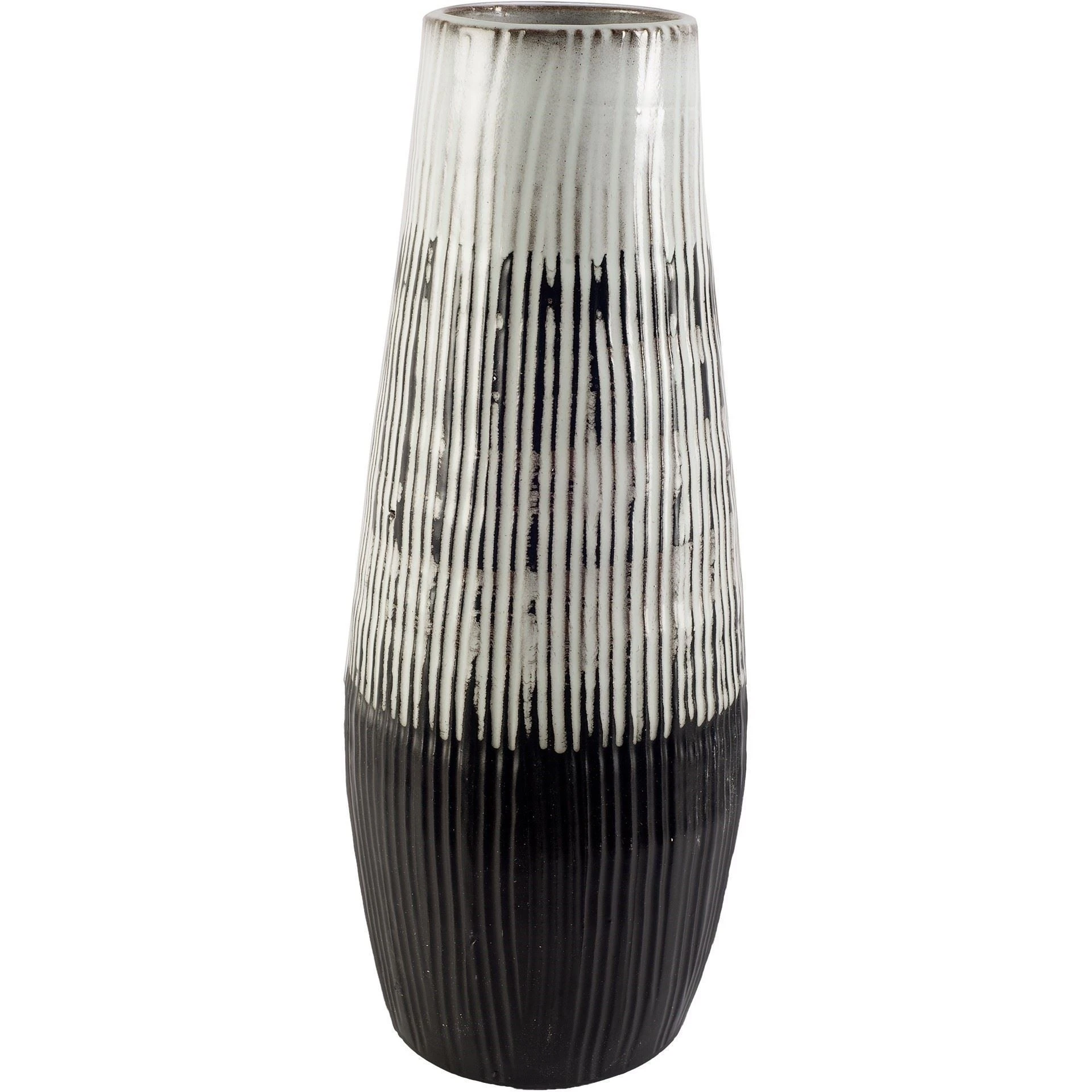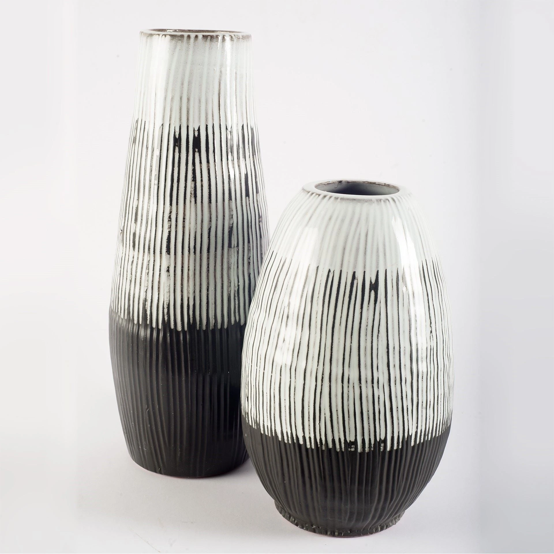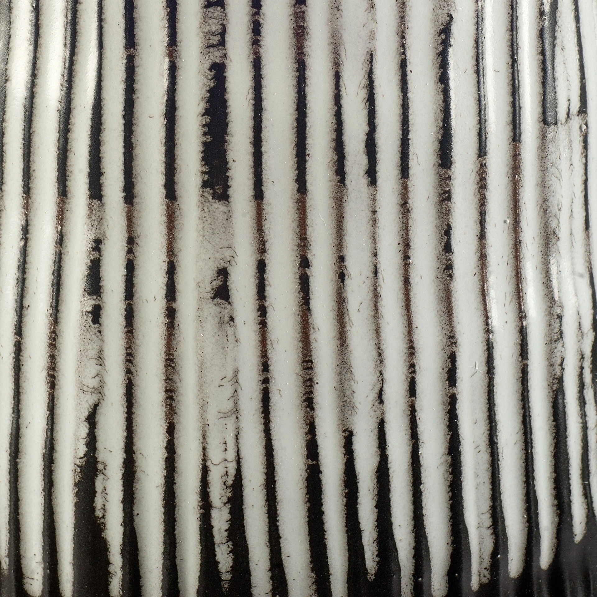 Tanami is a ceramic vase series featuring a solid dark brown base with a hand painted whiite glaze accents that lead to a large opening.