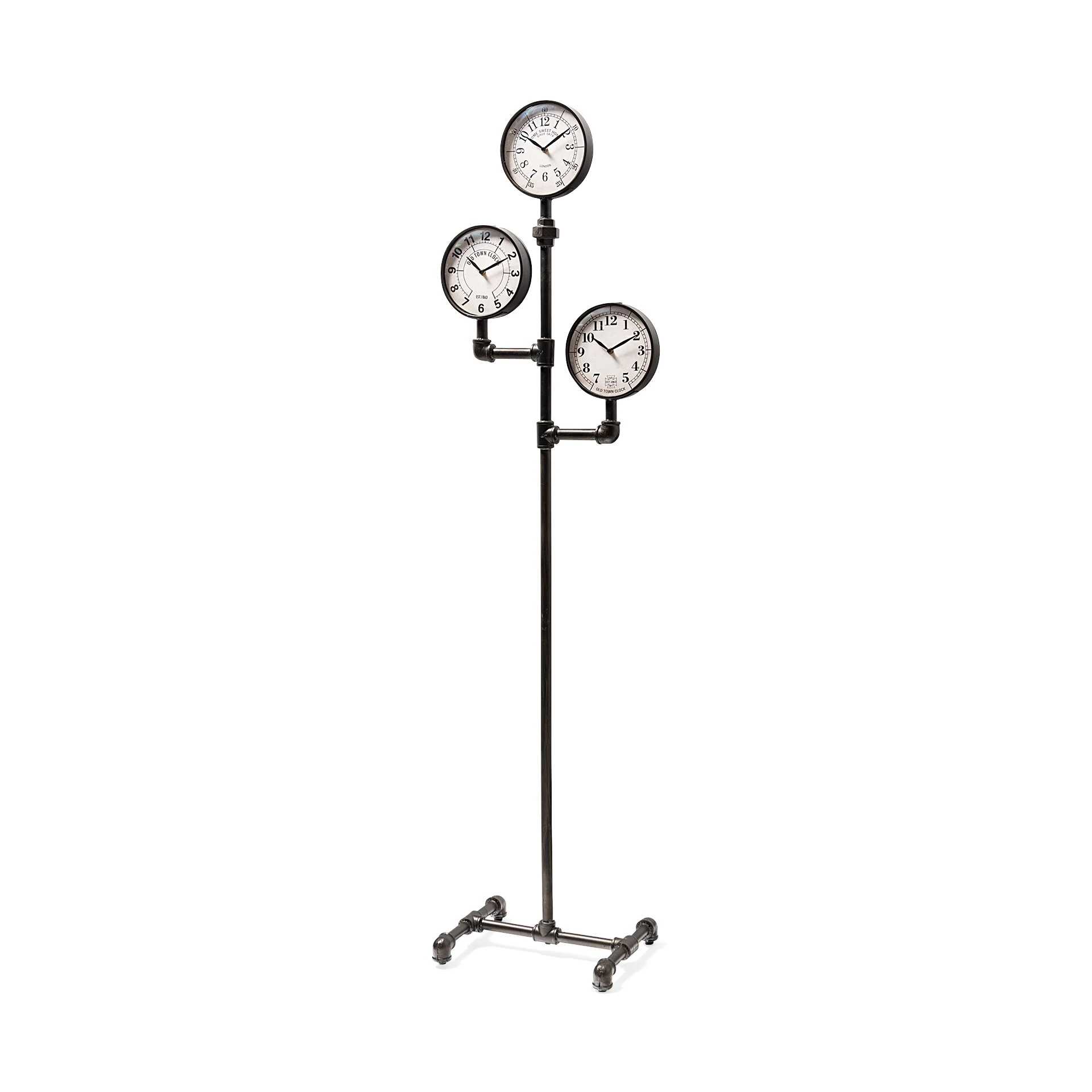 Trifect is a different style of floor clock that we know you won’t be able to take you eyes off of. Inspired by old iron pipes and gauges it features 3 different clock faces with 3 different face designs so you can track what time it is with friends and family all over the world.