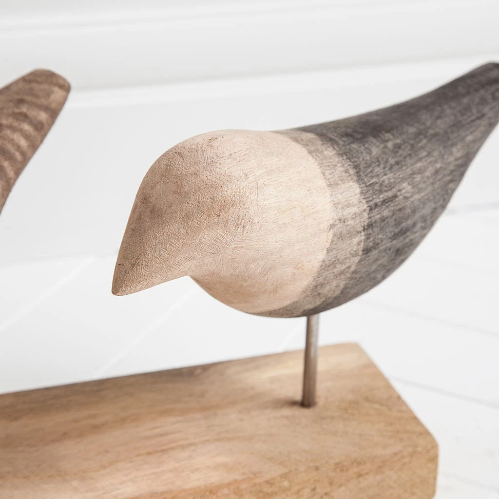 Put some whimsy on your curio shelf with this Yardley brown wood accent piece. Three tiny carved birds stand perched on a natural wood base for sturdy display.