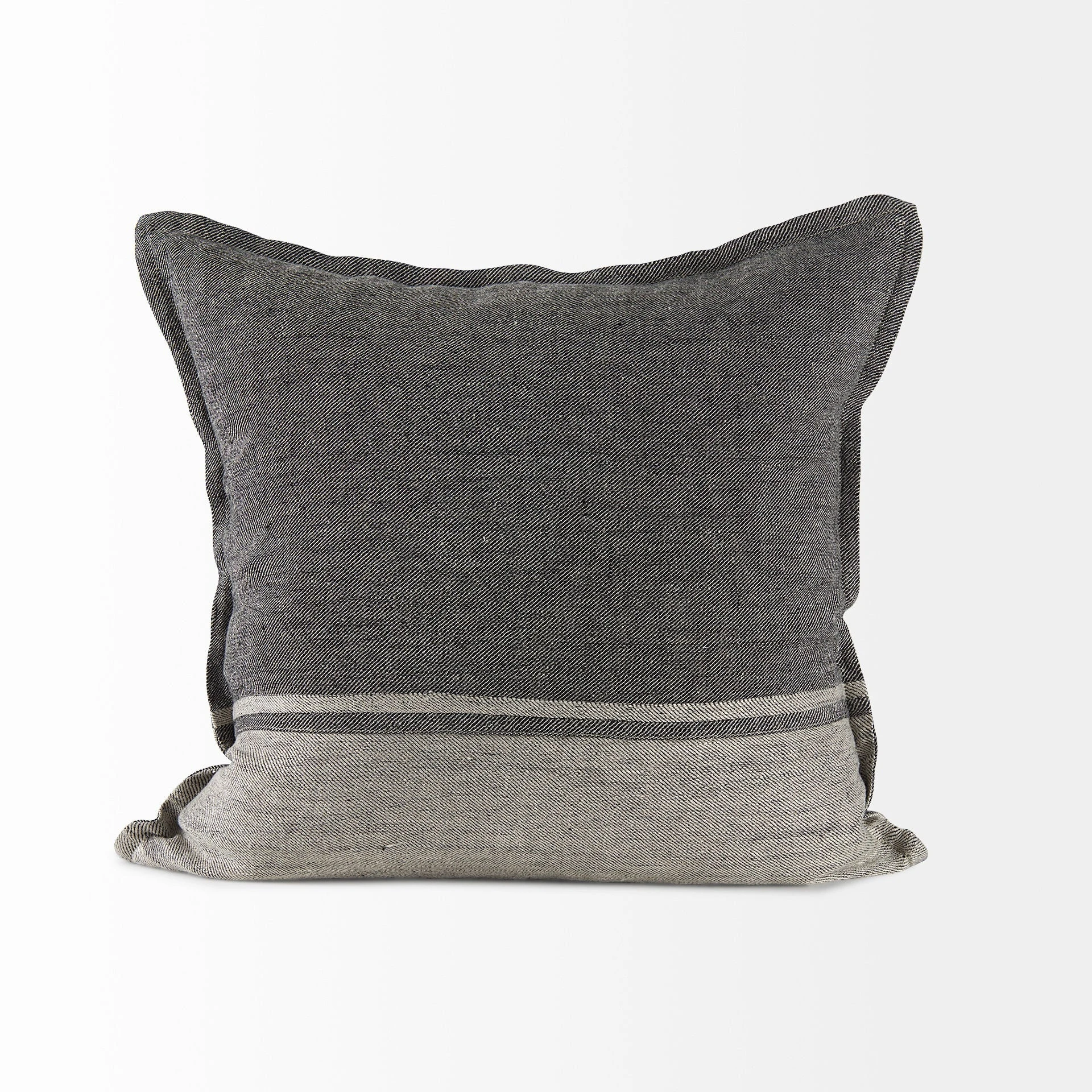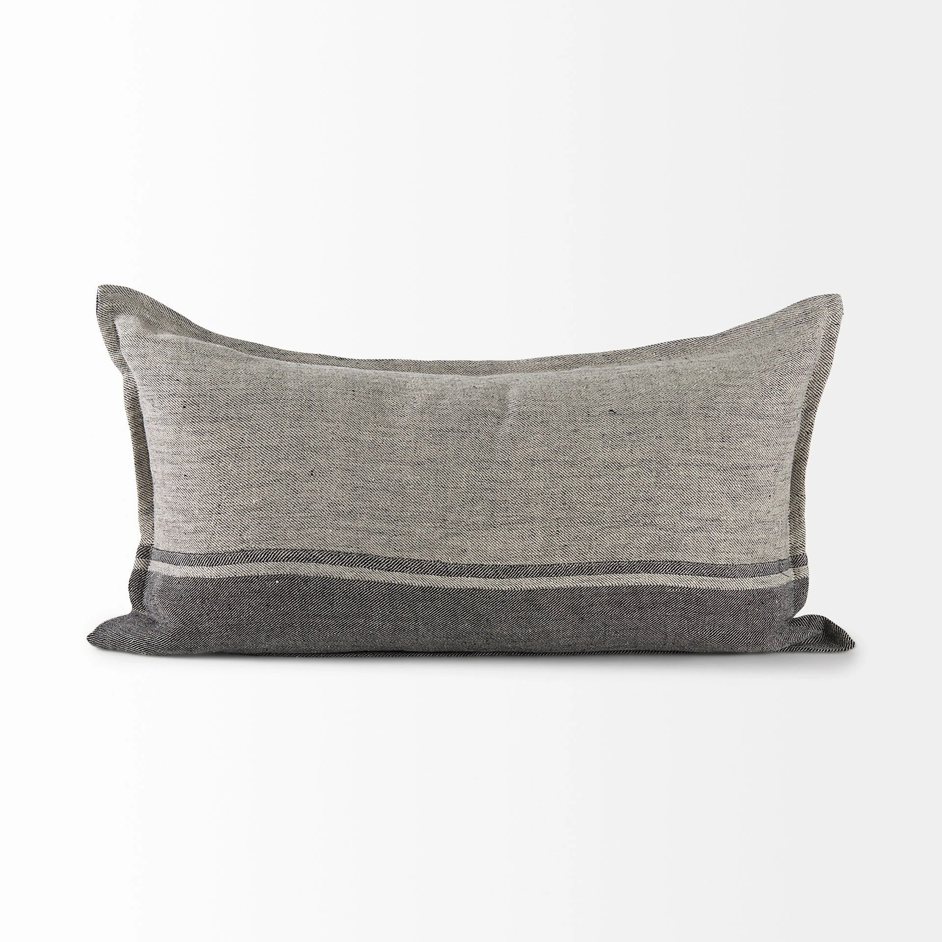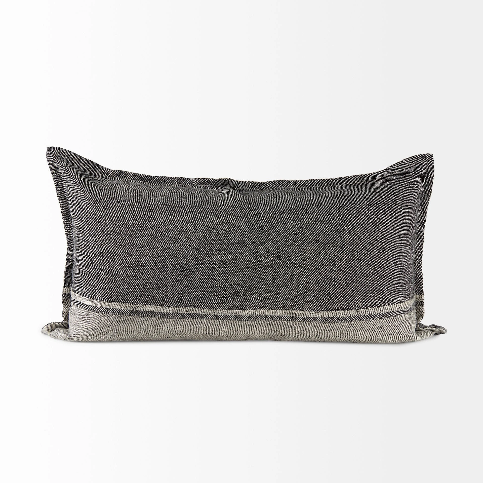 The Zadie is a 14L x 26W Light Gray and Dark Gray Fabric Color Blocked Decorative Pillow Cover with zipper closure. Also available in 20 x 20. Cover only. Insert not included (sold separately).