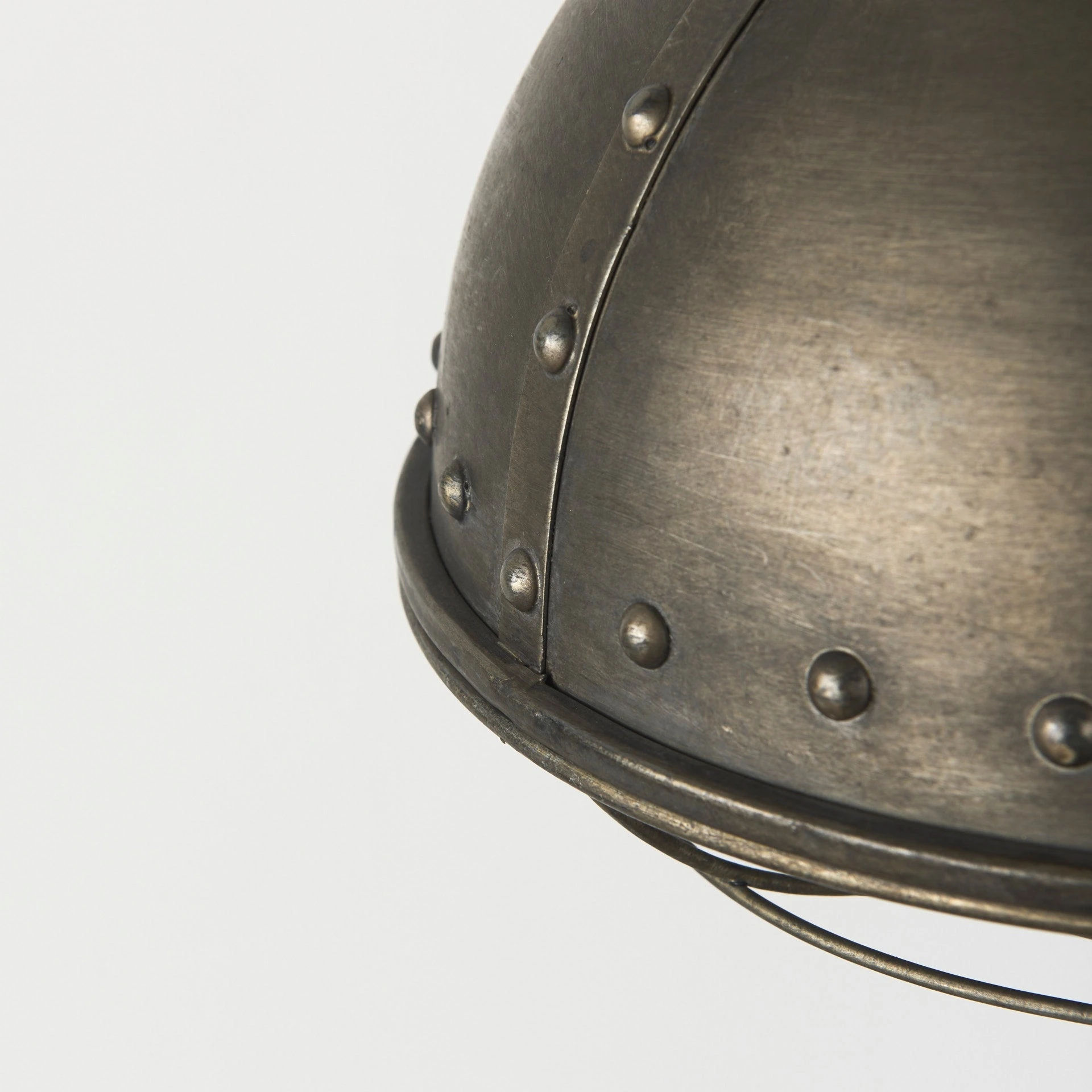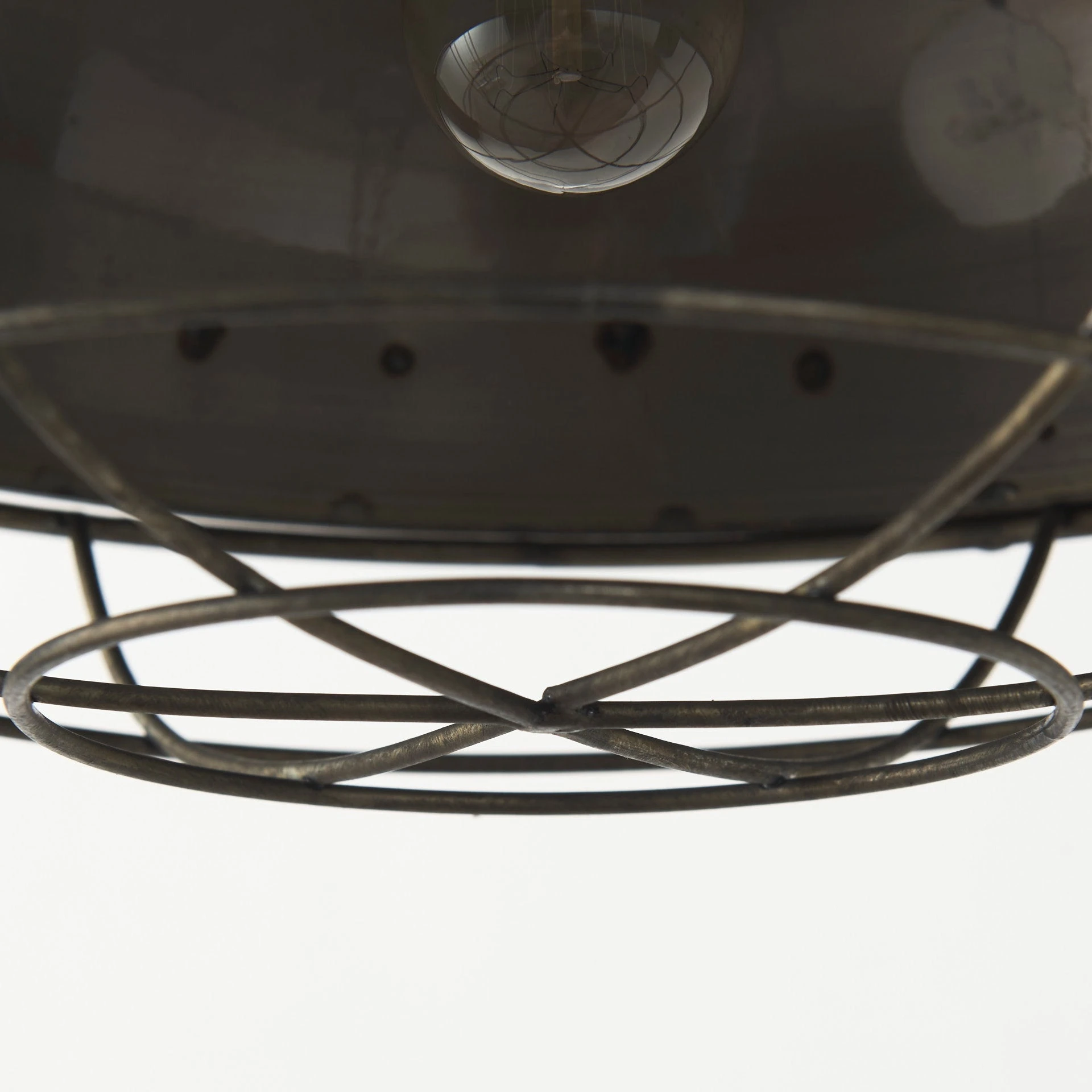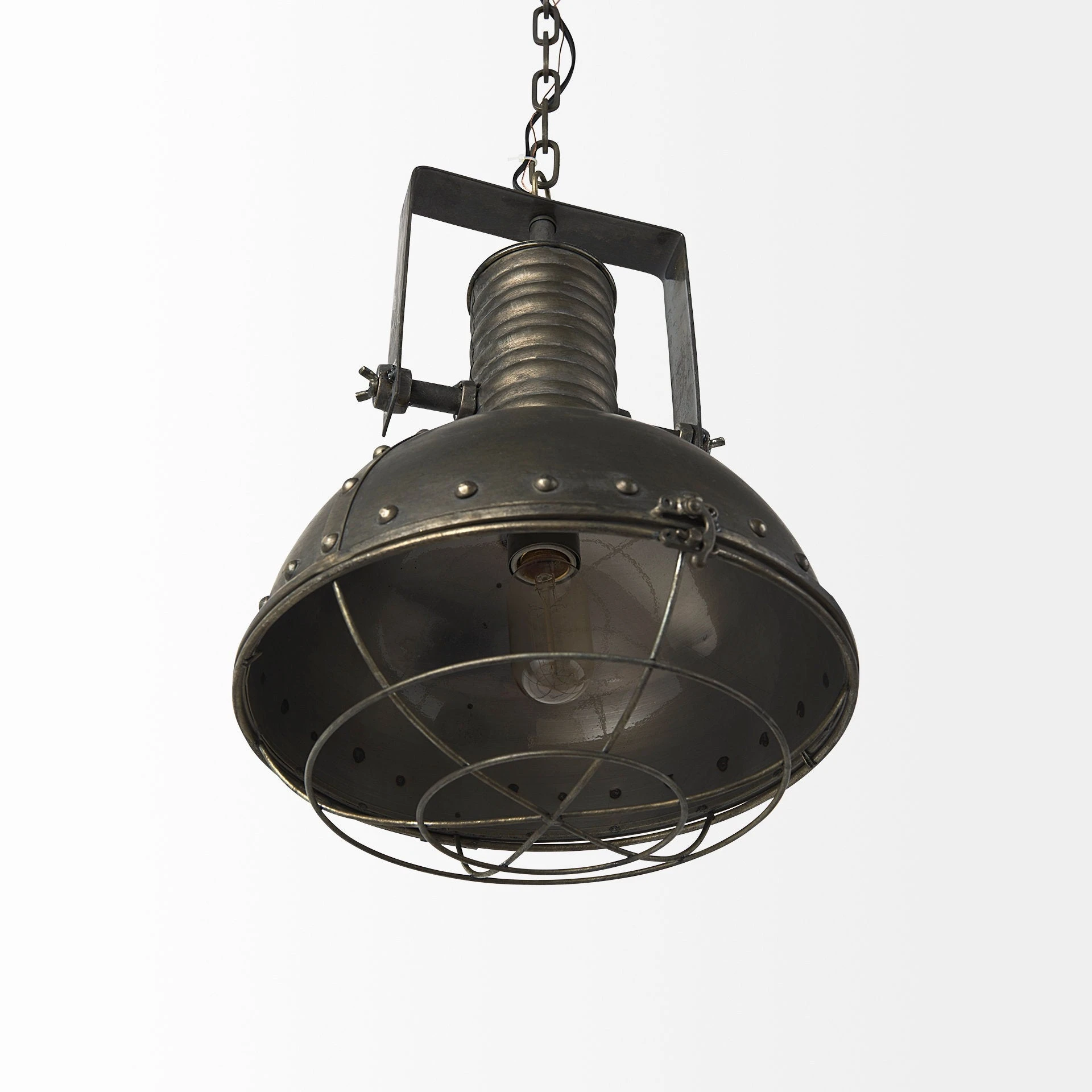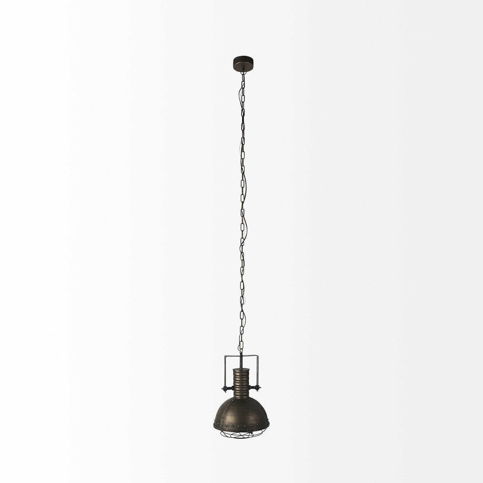 Crafted from metal, the Zaio is a stunning pendant light that is suspended using an industrial styled chain. The Zaio features a conical shaped metal shade with a caged bulb cover that contains a 60-Watt, E26 standard bulb (Sold Separately). The Zaio, thanks to its all-metal body with a weathered antique gold finish with nickel undertones, fits perfectly in spaces based on the Farmhouse and Industrial design styles.