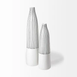 Promo โ Mercana Kira I Small White Pinstripe Ceramic Vase ๐